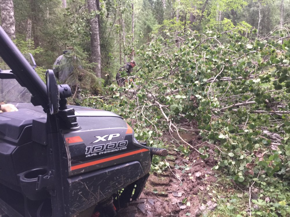 Гроза нанесла ущерб не только технике, среднем на 10 км. дорог получилось 24 завала. Удобства расчистки завалов UTV очевидны, выход и посадка в разы лучше чем на кавадре. Инструмент бросил в кузов и забыл на на квадрике надо закреплять и отвязывать, выработка на UTV была вдва раза выше. У нас обычно рабочий день начинается в 7, забегая в перед скажу что две бригады на следущий день приехали на много раньше чтобы поехать именно на этой машинке.