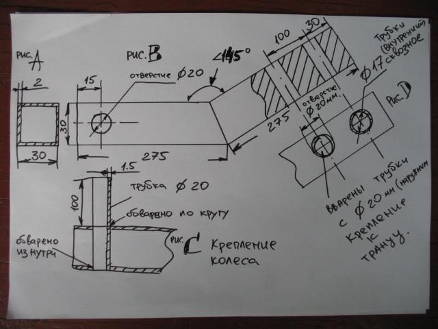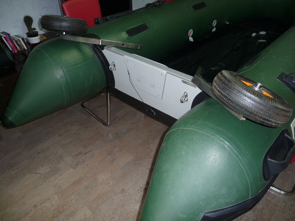 Часть первая.(так как наш любимый сайт не позволяет прикреплять много фотографий)Про установку транцевых колес написано переписано много, тем не менее, решил поделиться собственным опытом. Помучившись с лодкой в первый год эксплуатации задался целью облегчить себе жизнь и взялся за изучение конструкций транцевых колес на различных форумах. Наткнулся на очень интересную идею со схемами и фотографиями, мне она показалась самой оптимальной. :DPG[/attachment]Ее и решил воплотить в жизнь. Самое трудное было найти нержавейку и сварщика кто с ней работает. Искал месяца два, но нашел. Отправил им чертежи, согласовал цену и через неделю забрал готовое изделие. Сами колеса покупал в какой-то конторе на Петухова, они у меня железные, пластиковые наверное предпочтительней, так как легче будут.И так установка…Вывешиваем лодку так чтобы был удобный доступ к транцу и начинаем примерку.[attachment=0]P1020968.JPG. Важно колеса поставить как можно шире, это нужно для устойчивости лодки к опрокидыванию при транспортировке и поставить чтобы они не задевали за дно лодки. Важно колеса поставить как можно шире, это нужно для устойчивости лодки к опрокидыванию при транспортировке и поставить чтобы они не задевали за дно лодки.