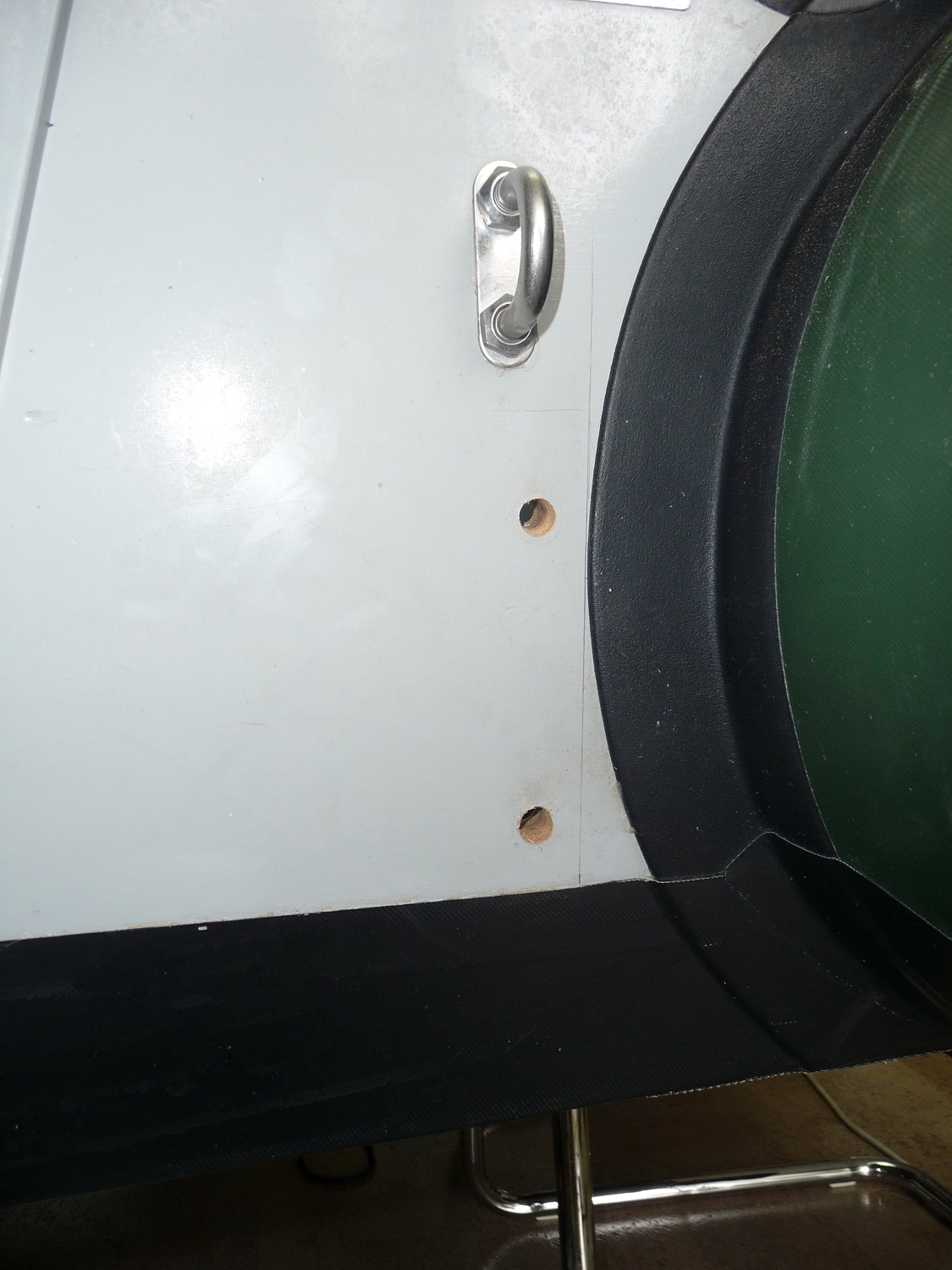 А вот решение от "KOreFEY" неоднозначное - с той стороны где эта доска стоит уже в лодку не запрыгнуть. А как показала моя практика ограничение пути доступа в кокпит делать не нужно.