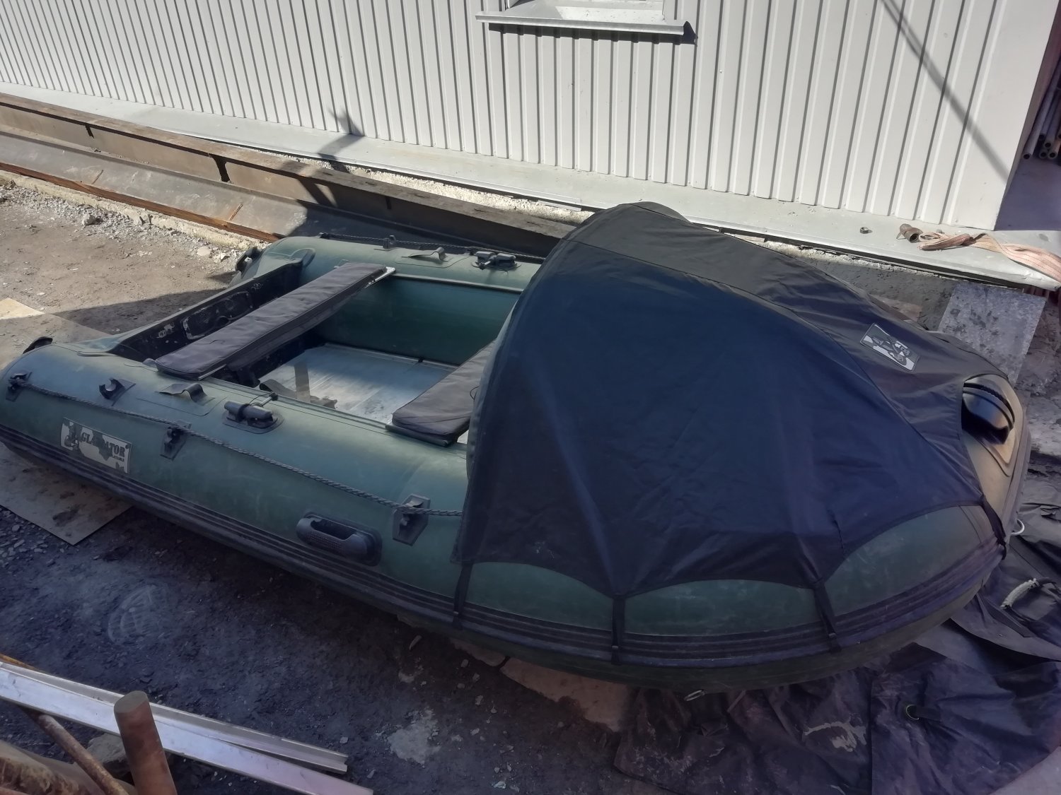 Гладиатор 330 с алюминиевым полом, киль, ходовой тент, тент на всю лодку.