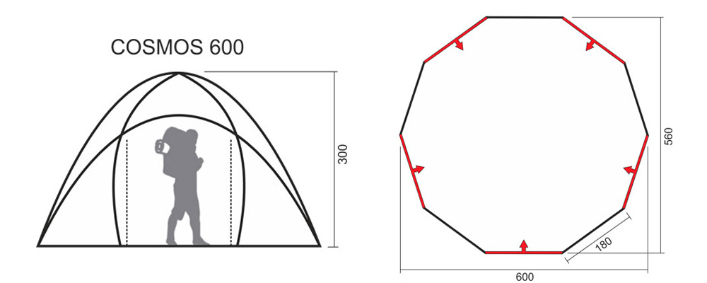 Размеры 600 см (Д) X 560 см (Ш), максимальная высота 300 см. Материал тента 150D POLYESTER OXFORD PU 5000MM, все швы проварены.