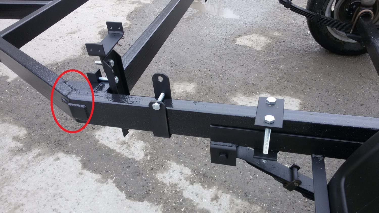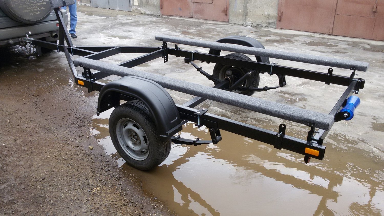 Итак, пошел третий сезон с этим прицепом. Пара недальних выездов на рыбалку и понимаю, что с прицепом что-то не то. Осмотр показал, что прям сильно не то. Тяжелее 350-й ПВХ-лодки с мотором 9,8 ничего не возил.Очередной прицеп уехал владельцу. С его разрешения.