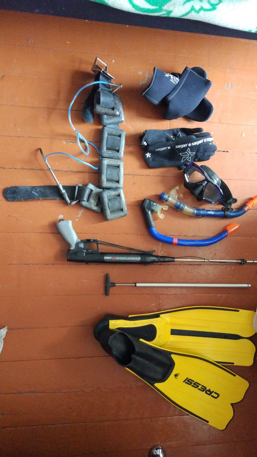 Продам полный комплект для подводной охоты. Костюм 7 мм рост +- 178см, носки 43 р.,ласты, маска с трубкой, грузовой пояс с куканом, подводное ружье-пистолет. Все в хорошем состоянии, одевал 3 раза. Также есть баллоны для дайвинга заправленные и поверенные-2 шт., Не хватает клапана для дыхания. По отдельности не продается, за исключением балонов. Продаю в связи с переездом.