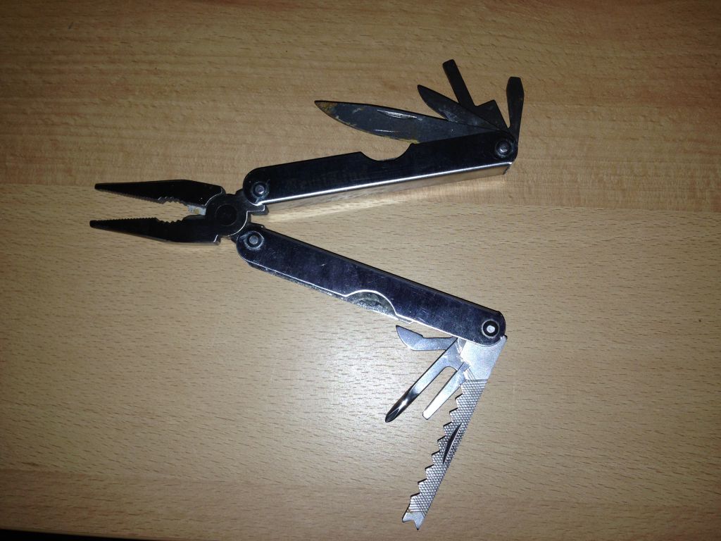 Купил мультитул в ашане, по цене 120 рублей, все лето пользовал, состояние нормальное, потерять не жалко, плоски есть, открывалка банок и небольшой нож есть, все устроило. Вечерком фотки скину.