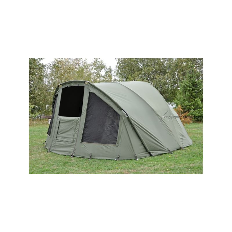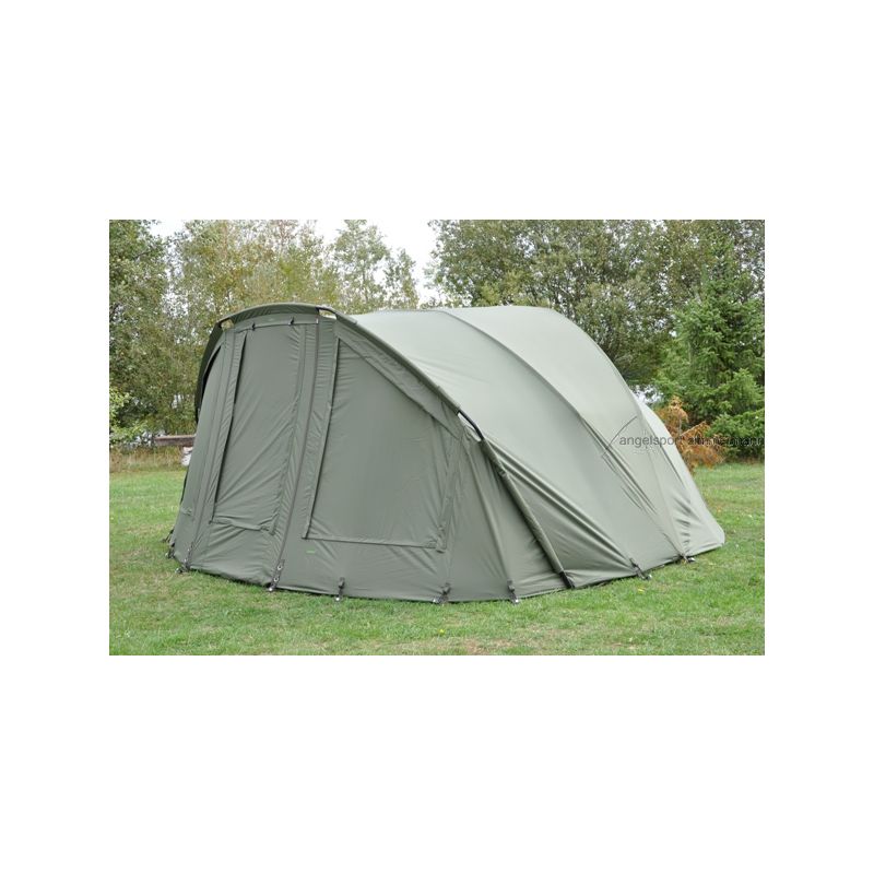 «-» - крайне неудобная, вход-выход только на четвереньках, сложить вещи некуда, не говоря уже о карповом оборудовании, ветроустойчивость средняя, в жару жарко, в холод холодно.