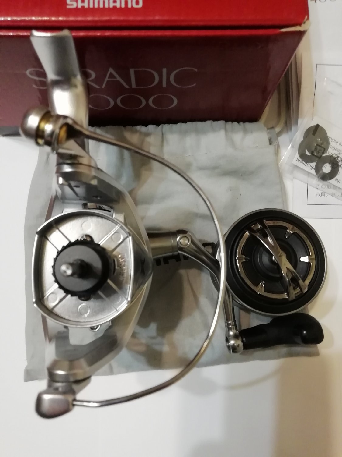 Shimano stradic 15 4000 в отличном состоянии, 1 сезон. Катушка не разбиралась, не плавала, песка не видела, предельные груза не испытывала. Бонусом экономайзер на шпулю.