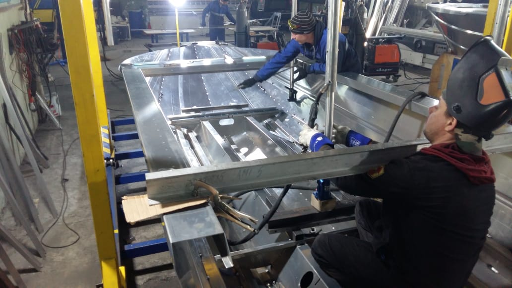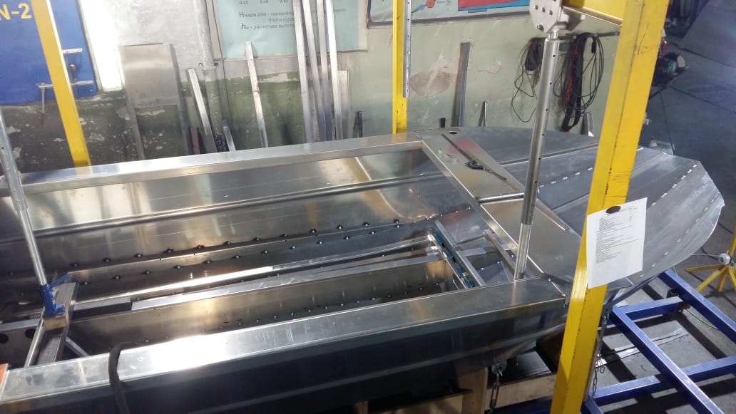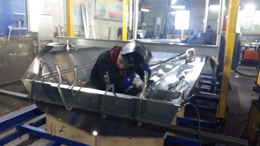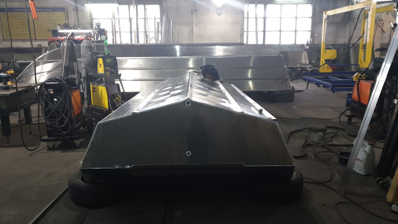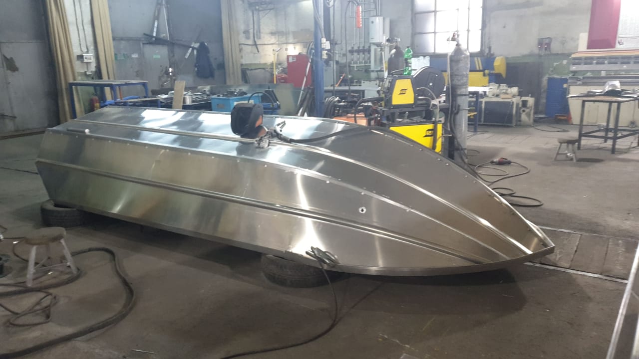 Лодку перевернули, приваривают накладки на киль и стыки борта и днища, не помню как эти накладки называются)))