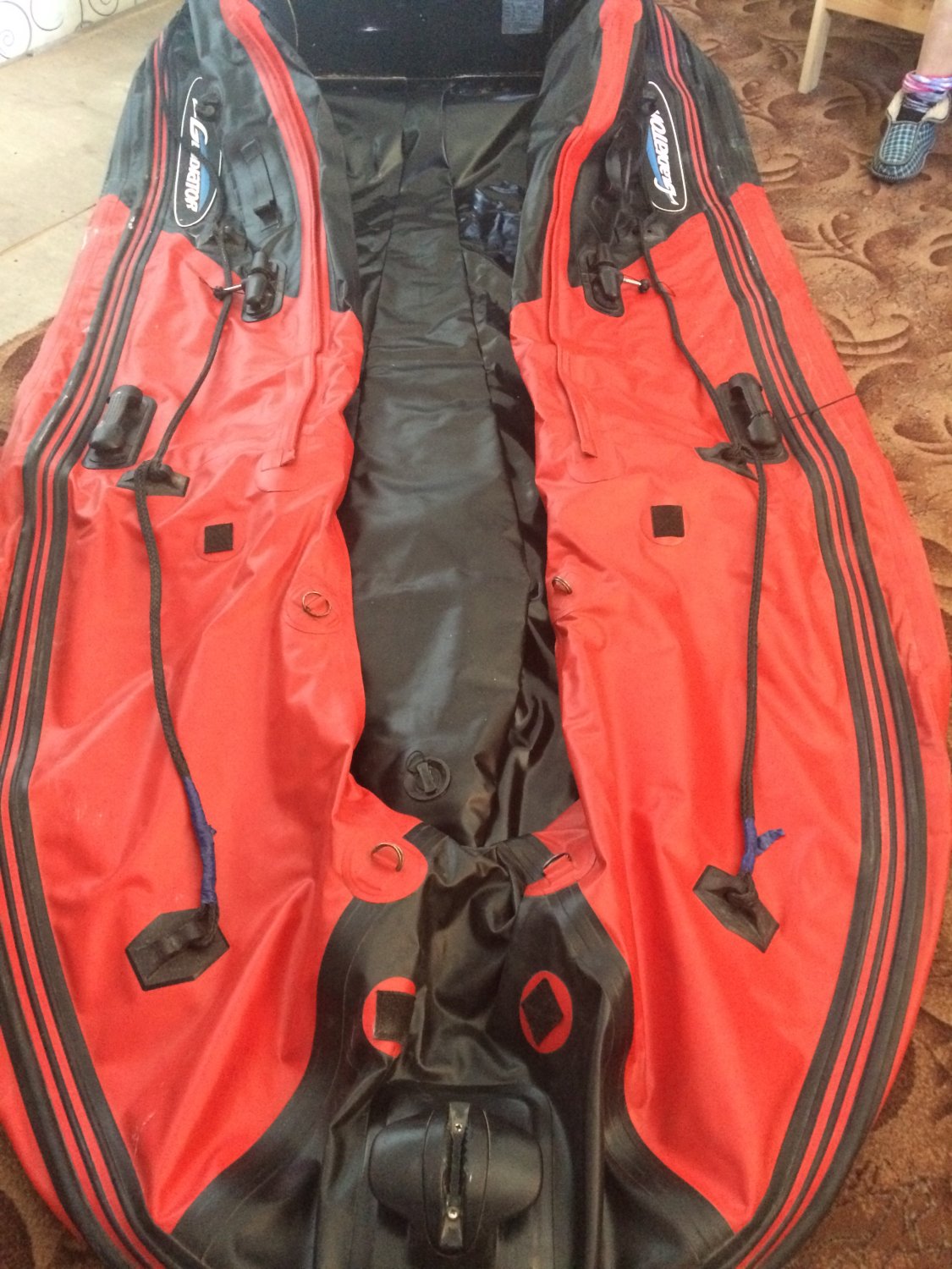 Продам лодку гладиатор 320, с алюминиевым дном, лодка 2014 года, красно-чёрного цвета, необходимо подклеить резину стыков транца