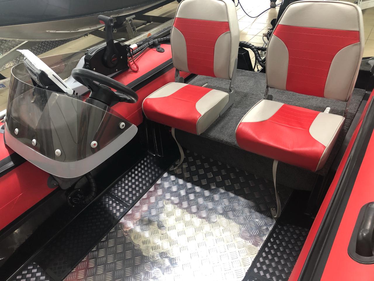 Итак, что я получил кроме места? Получил чуть возросшую скорость при том же моторе Suzuki DF 9.9 (20), вдвоём на заднем диване я 70кг + пассажир 120кг, + вещи в середине кокпита (30кг) скорость по стоячей воде 40кмч. Что очень неплохо. В одного с вещами 46-48кмч. Расход топлива при этом получился 9-10л на 100км!!!