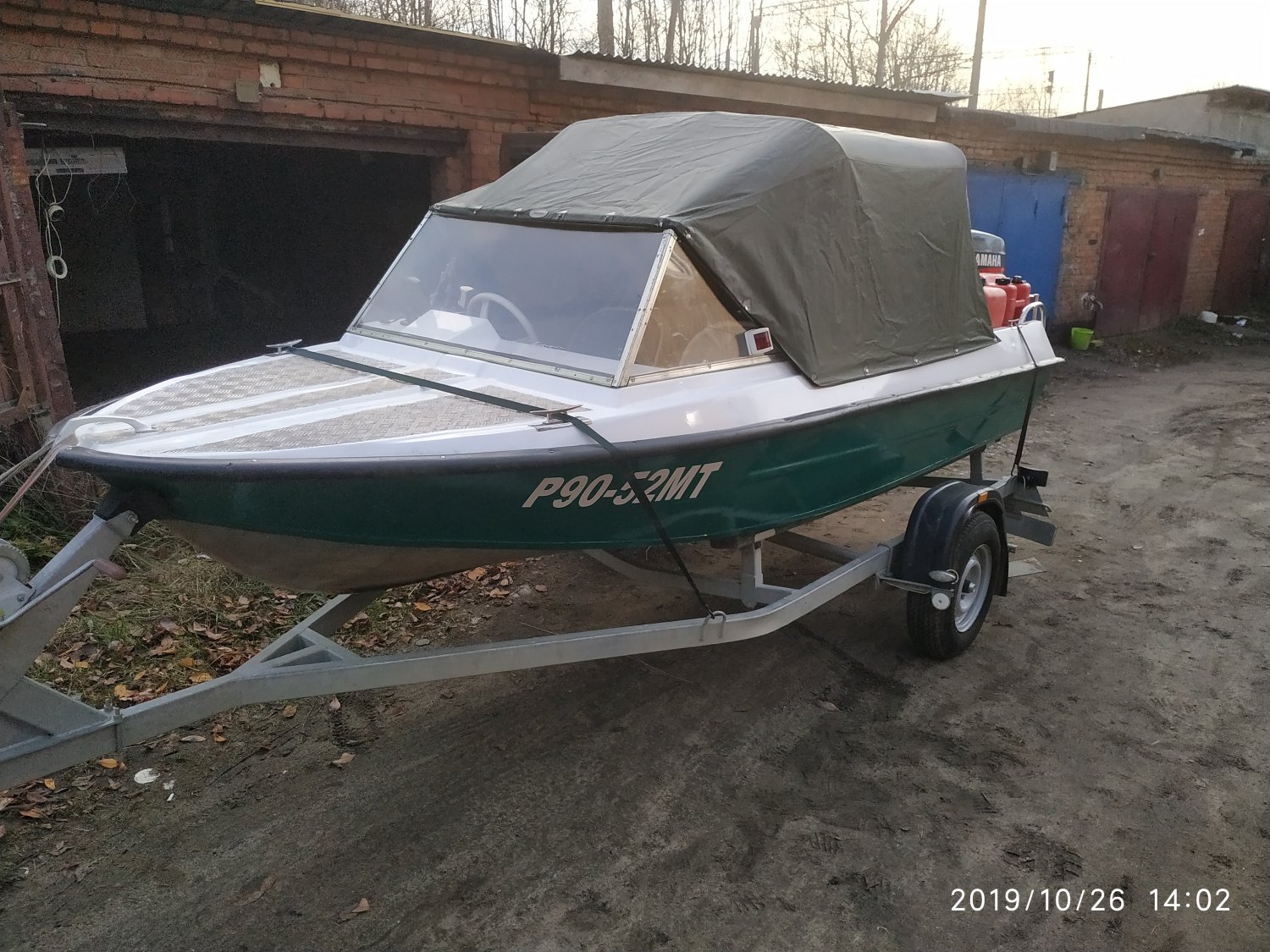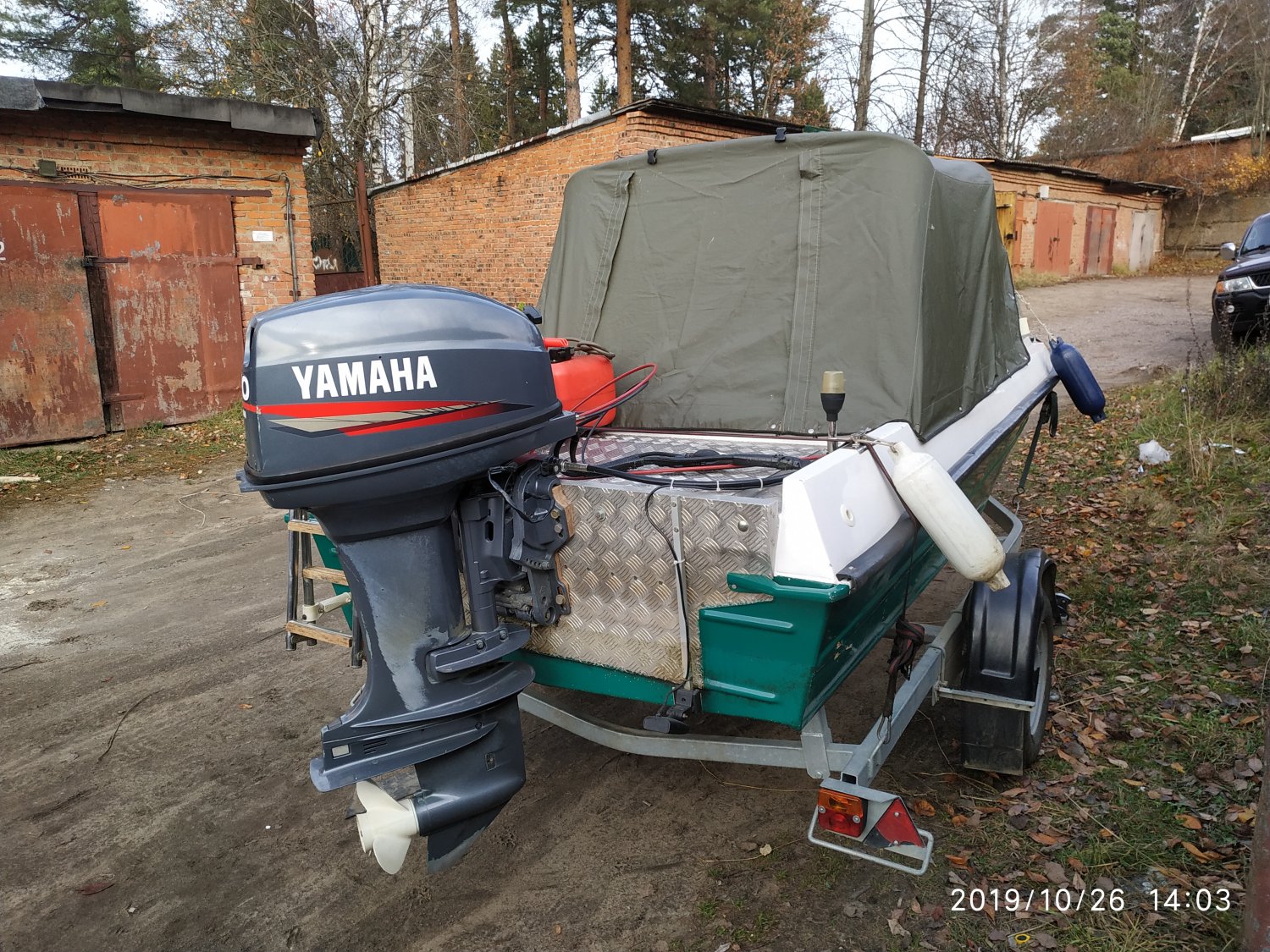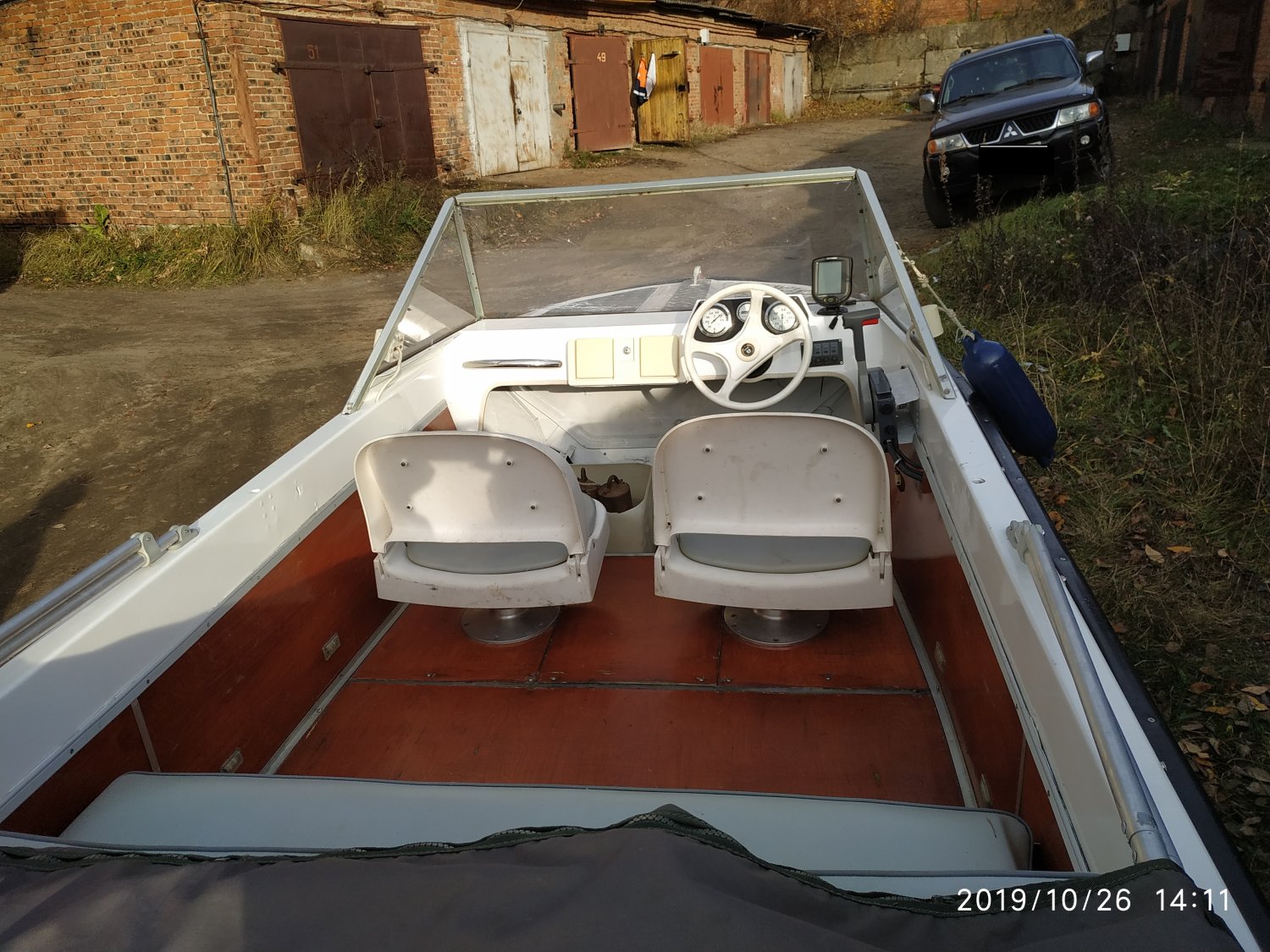В комплекте прицеп, GSM-маяк Старлайн, электропомпа с поплавком контроля уровня воды, ходовой, транспортировочный (самодельный) тенты, два переносных пластиковых бака по 25 литров, 3 оригинальных гребных винта с шагом 12, 15, 17 (грузовой, средний, скоростной), ходовые огни, топовый фонарь, подсветка салона, кокпита, прикуриватель, бардачок с двумя подстаканниками, двухлучевой эхолот, 4 швартовочные утки, привальный брус по периметру, лестница для купания с поручнем, 2 кранца.