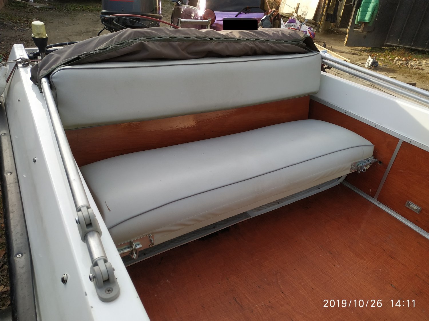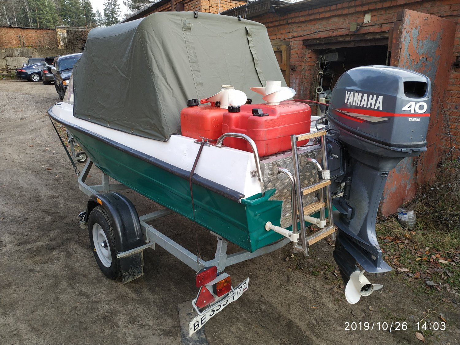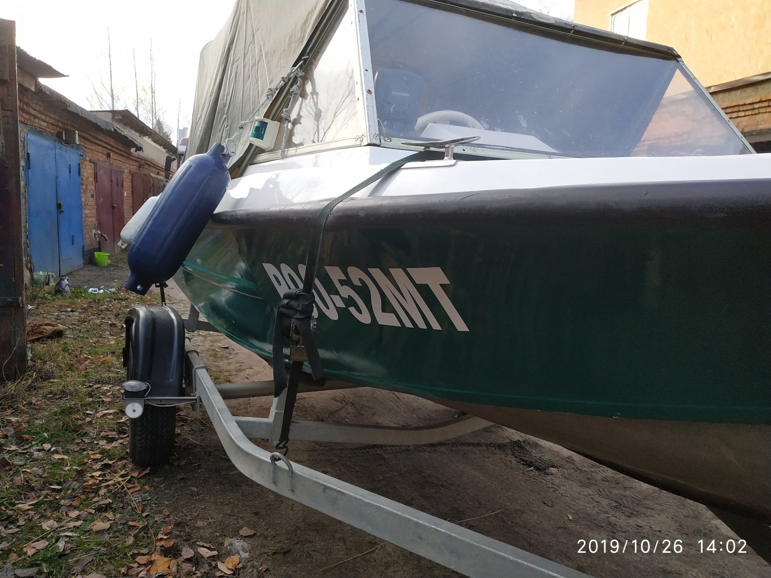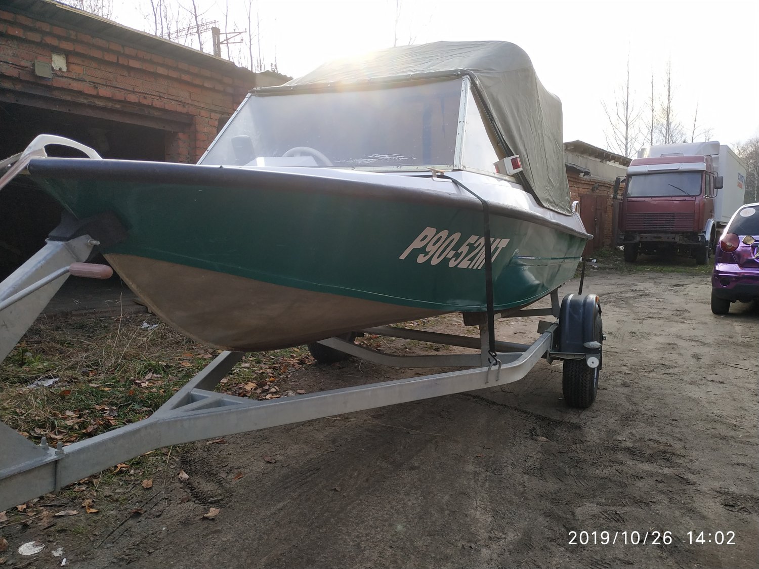 В комплекте прицеп, GSM-маяк Старлайн, электропомпа с поплавком контроля уровня воды, ходовой, транспортировочный (самодельный) тенты, два переносных пластиковых бака по 25 литров, 3 оригинальных гребных винта с шагом 12, 15, 17 (грузовой, средний, скоростной), ходовые огни, топовый фонарь, подсветка салона, кокпита, прикуриватель, бардачок с двумя подстаканниками, двухлучевой эхолот, 4 швартовочные утки, привальный брус по периметру, лестница для купания с поручнем, 2 кранца.