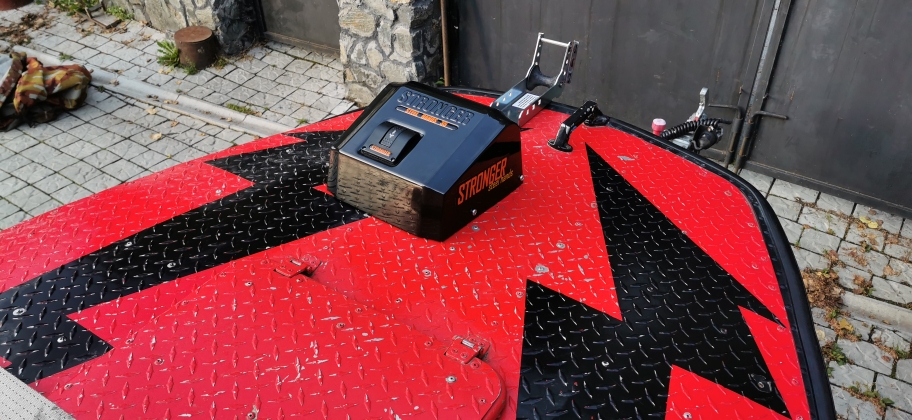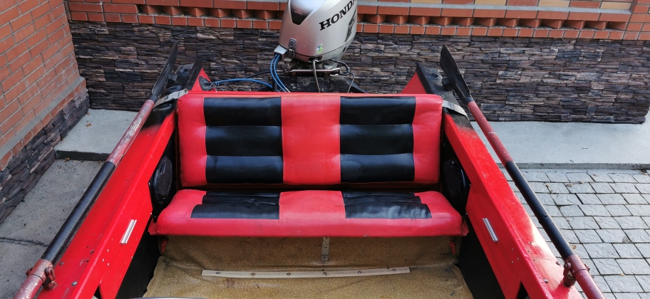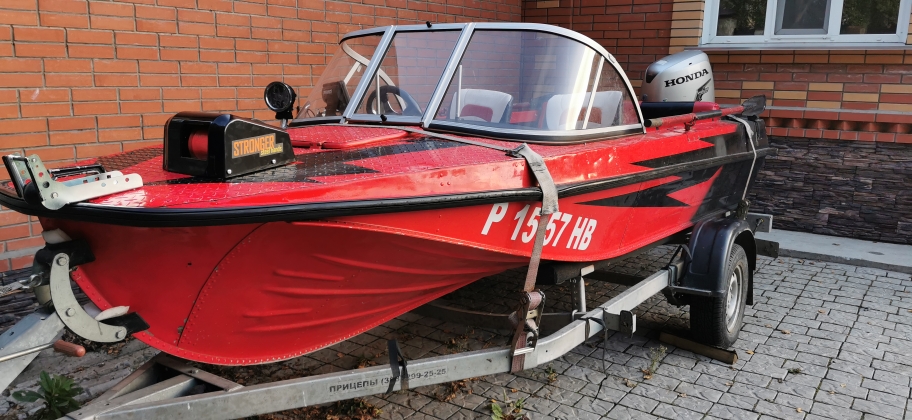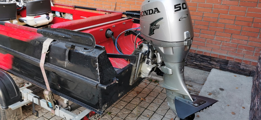 а вот модернизация не прекращалась)). В лодке установлен сверх усиленный транец , мотор HONDA 50л.с.
