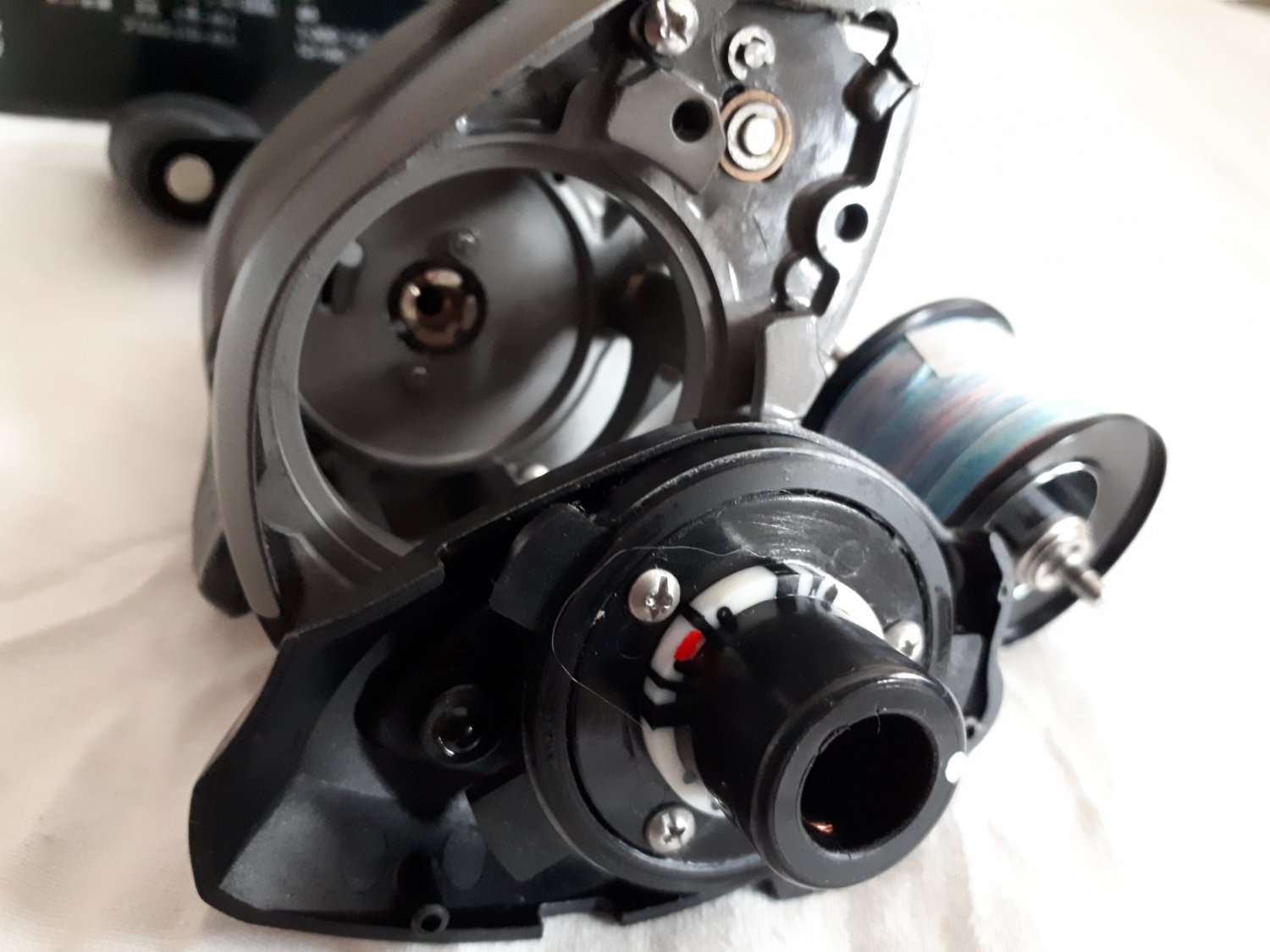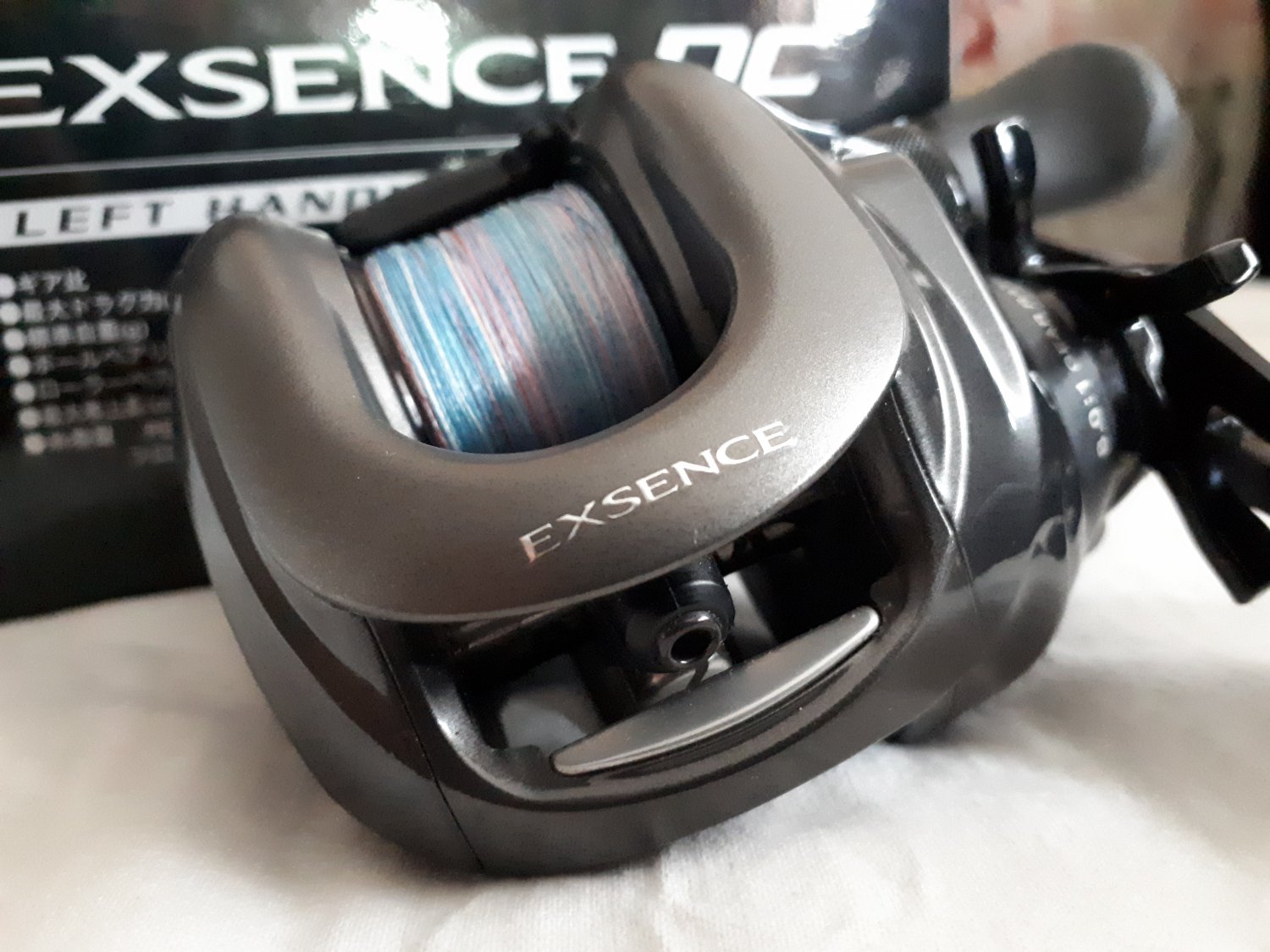 Мультипликаторная катушка Shimano 12 exsence DC(RIGHT) / Shimano 13 exsence DC(LEFT) Модификации по левую и правую руку. Страна производства: Япония (Made in Japan,внутренний японский рынок) Модификация (модель) катушки Передат. число Диаметр(ширина шпули: Нагрузка на фрикцион (кг) Вес (г) Скорость подмотки (cм) Длина рукоятки: Лесоёмкость (РЕ) Количество подшипников 12 Exsence DC (Right) 8.0 34/22 мм 4.5 240 85 см 45 мм #1.0-300, #2.0-150 9/1 13 Exsence DC (Left) 8.0 34/22 мм 4.5 240 85 см 45 мм #1.0-300, #2.0-150 9/1 Наиболее интересным техническим решением катушки, конечно же является система цифрового контроля торможения DC(digital control) , которая контролирует момент вращения шпули и соответственно скорость полета приманки, при этом применяя различные режимы торможения. Работает система автономно, то есть встроенный в нее аккумулятор, заряжается по принципу генератора, используя собственную энергию заброса. Так как данная катушка в основном предназначена для работы с шнуром, шесть из семи запрограммированных режимов торможения предназначены именно для него и один для использования флюорокарбона. Стандартный режим торможения для шнура (max-min) - имеет четыре градации усилия торможения от максимального до минимального, которые подбираются вами в зависимости от условий ловли и вашего опыта. Режим F - режим торможения при использовании флюорокарбоновой лески. Режим BB (Big Baits - большие приманки) - режим торможения при использовании больших, "парусящих" приманок. Режим SP (Special PE Mode - специальный режим для шнуров) - предназначение этого режима ночная ловля, когда нет возможности следить за приманкой и шпулей. Очень удобный режим, чтобы тренироваться новичкам, только начинающим осваивать кастинг, а также комфортно ловить профессионалам при ловле в сложных погодных условиях. В этом режиме очень сложно получить "бороду", если вы правильно отрегулировали осевой тормоз.
