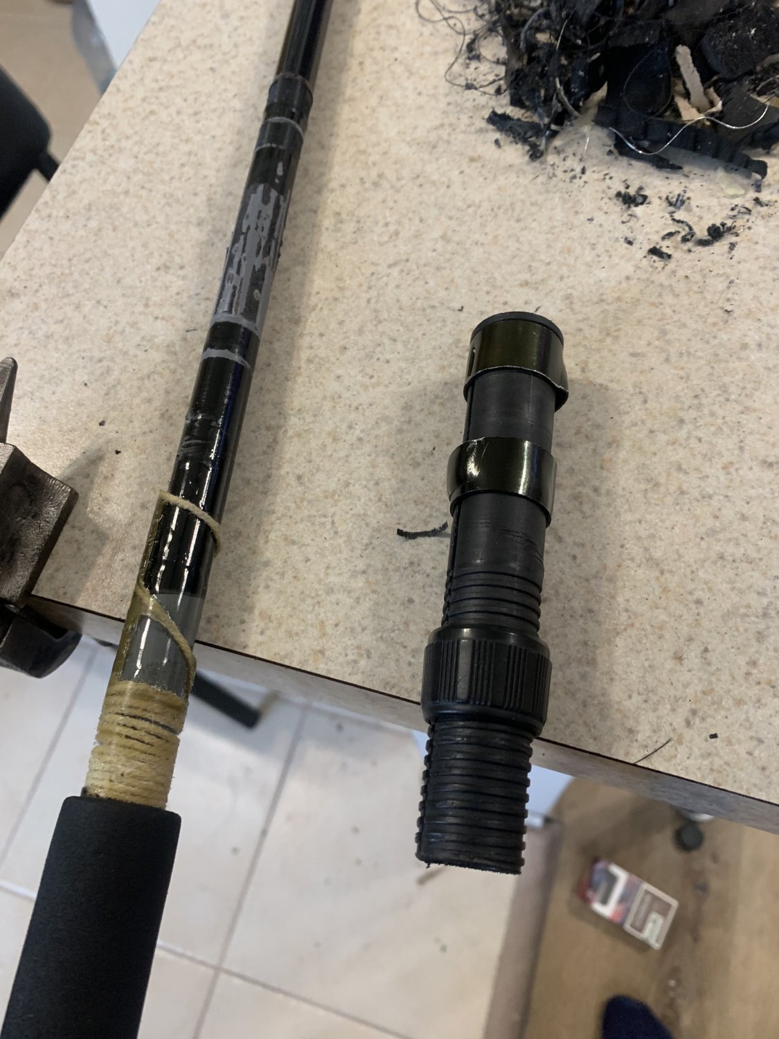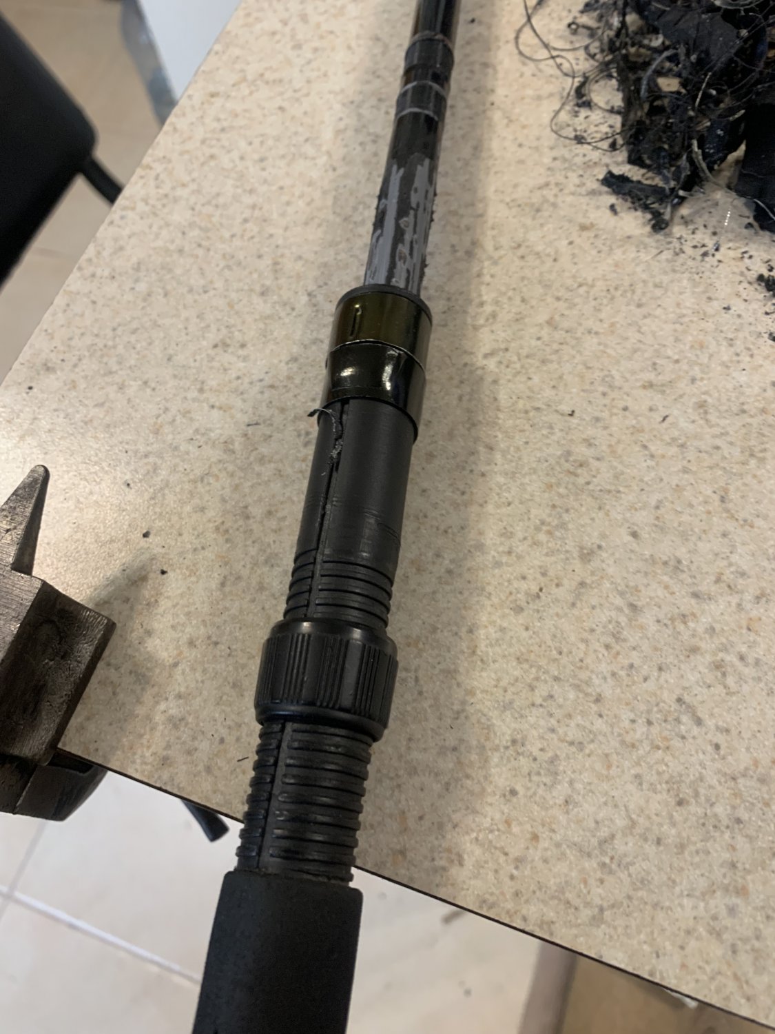 Попала в ремонт палочка известного не дешевого бренда и вот такой прикол увидел!!! Стык бланка с трубкой рукояти! Перелом под ручкой катушкодержателя- мдаааа уж экономят ребята!!!