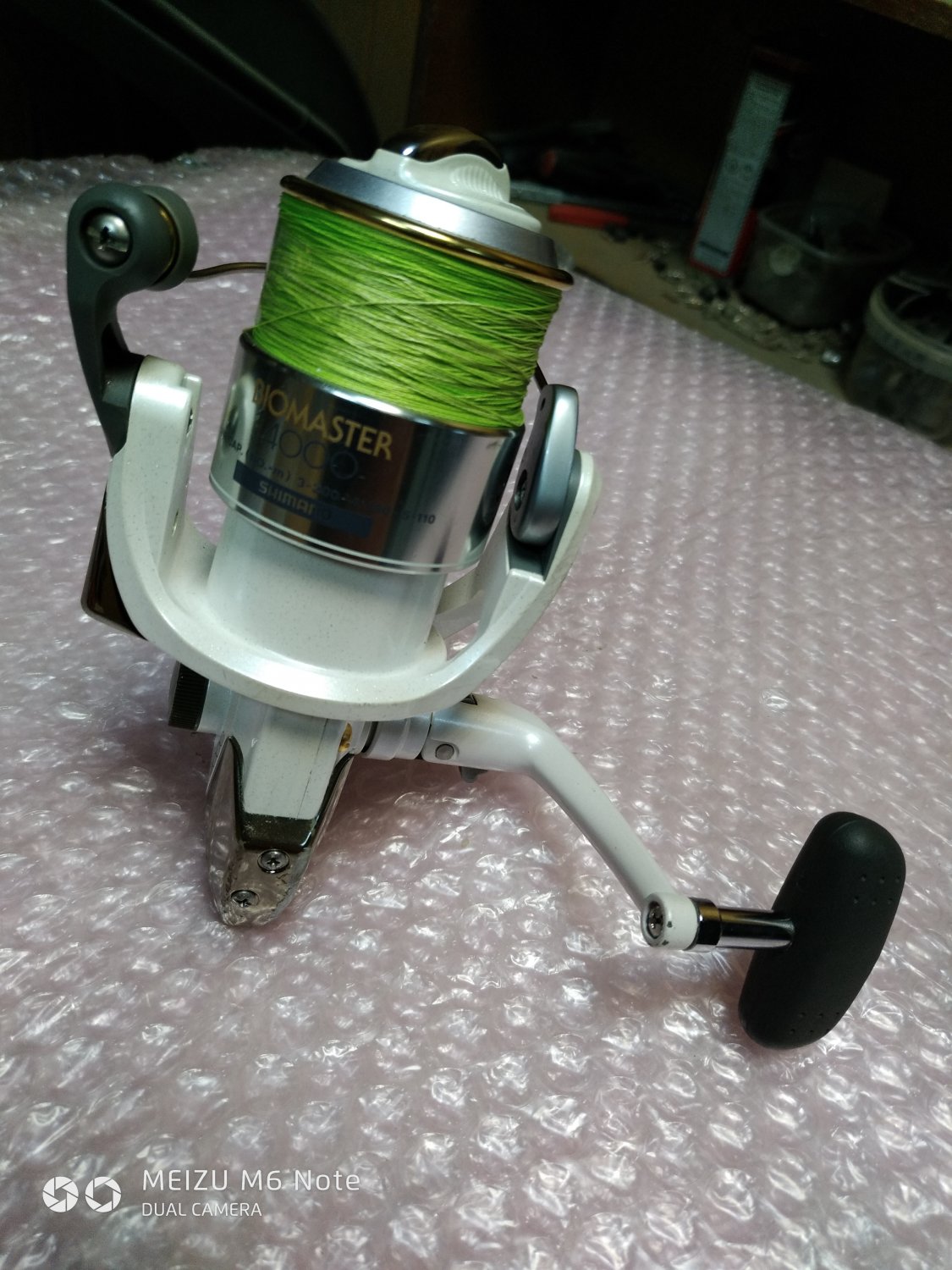 3.Shimano 08 Biomaster 4000 (ОТС,310 гр,передатка 4,8,мет полукорпус с лапкой,проведено ТО синтетикой M.T.C.W.+ апгрейд,подшипники 7+1,веса 15-45,очень надежная крепкая силовая катушка с ходом,которому позавидуют более топовые катушки) - 14000.