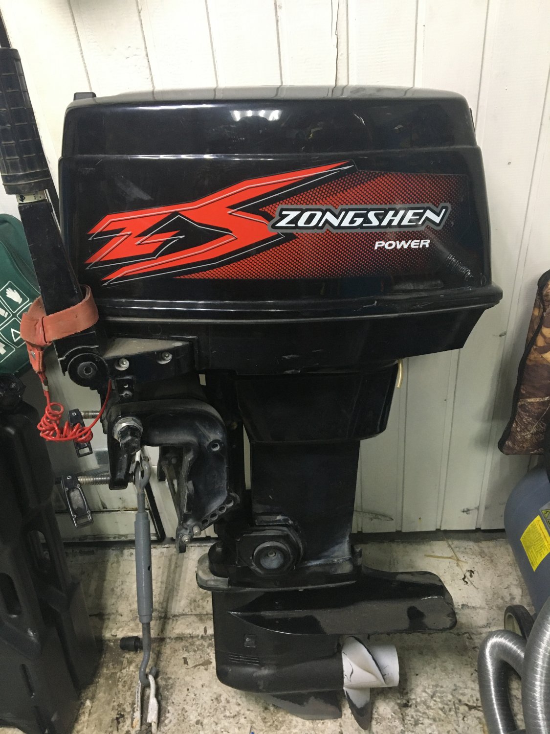 Отличный мотор , есть два винта( родной и скоростной),бензобак 25 литров.