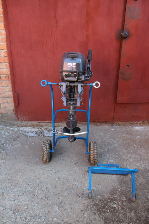 Позволяет устанаволивать мотор на транец не снимая со стойки, это важно, если со спиной проблемы. Наличие вторых колес, позволяет закатывать мотор в багажник или кузов. Разгрузка-погрузка становится весьма нетяжелым занятием, сводя риск уронить/поцарапать мотор к минимуму.
