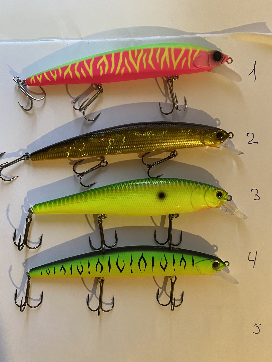 1.Jackal rirenge 130sp.900p. 2.O.S.P rudra 130sp.900p. 3.Lucky Craft pointer 128sp.700p. 4.O.S.P rudra 130sp.900p.