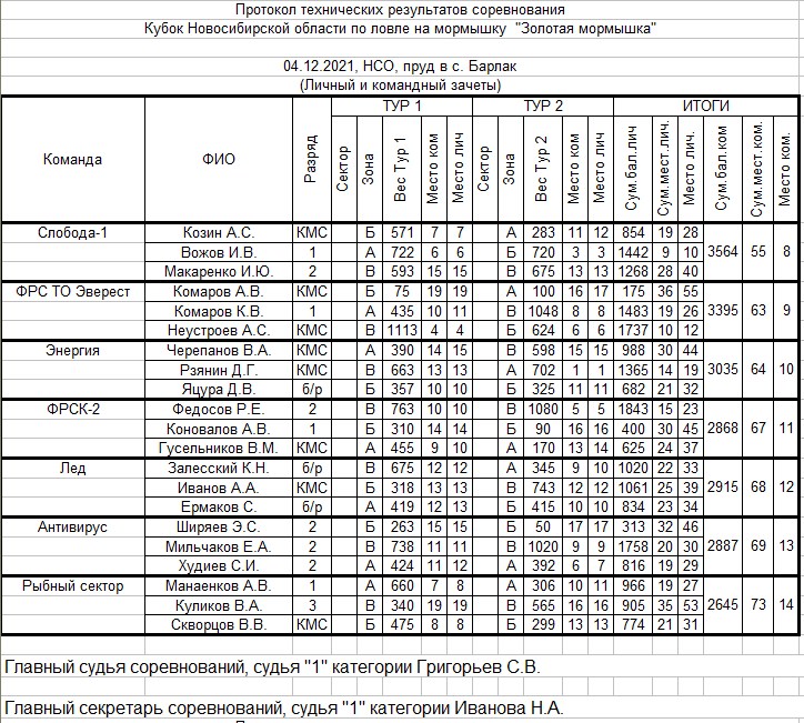 В зачет принимаются все виды рыб, согласно утверждённым правилам рыболовства для Западно-Сибирского рыбохозяйственного бассейна. По команде судьи об окончании соревнования все участники должны вытащить мормышку из воды. Участникам соревнований запрещается: употреблять спиртные напитки до и во время соревнований; применять отличные от мормышки снасти; покидать зону соревнования без разрешения судьи; передавать свой улов другим участникам или принимать улов от посторонних лиц. За допущенные нарушения к участникам будут применяться штрафные санкции, вплоть до дисквалификации (меру наказания определяет главный судья соревнований).