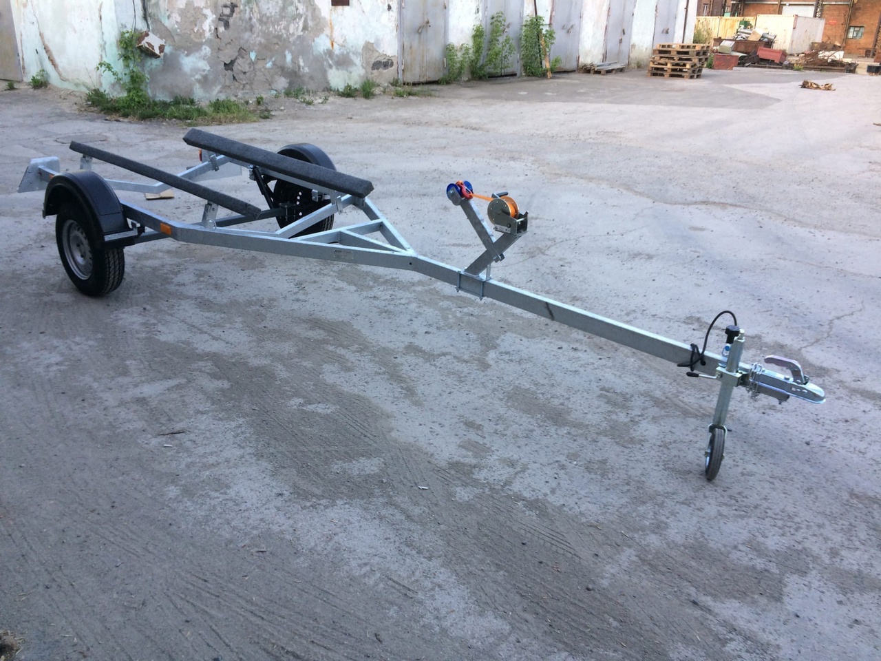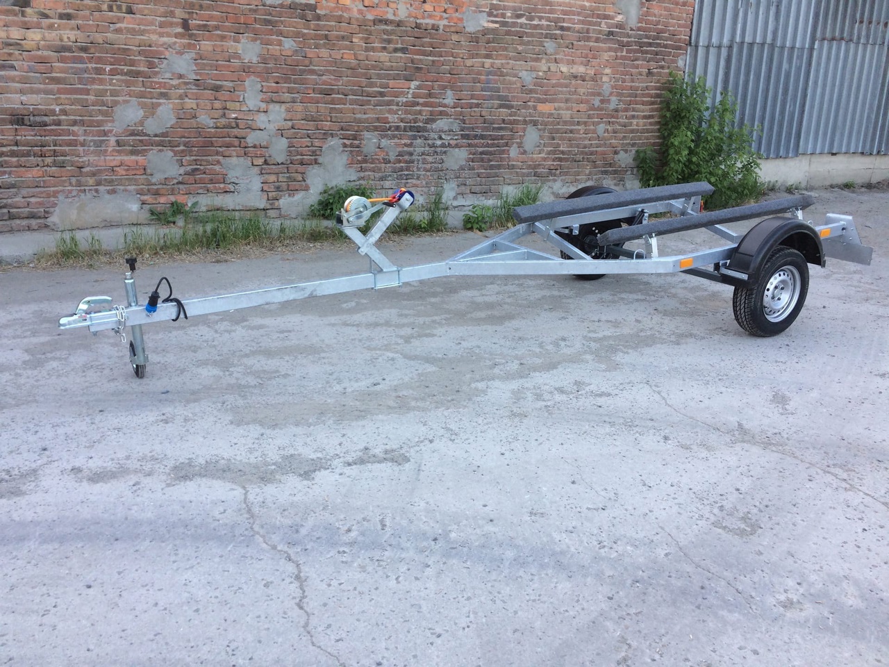 Одноосный облегченный прицеп для перевозки лодок, в т.ч. ПВХ и гидроциклов. Лебёдка в комплекте.