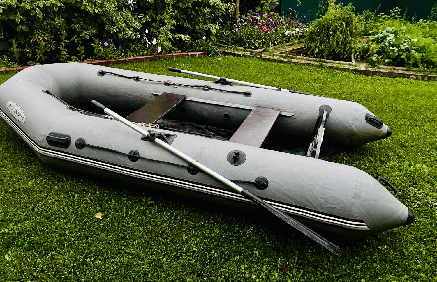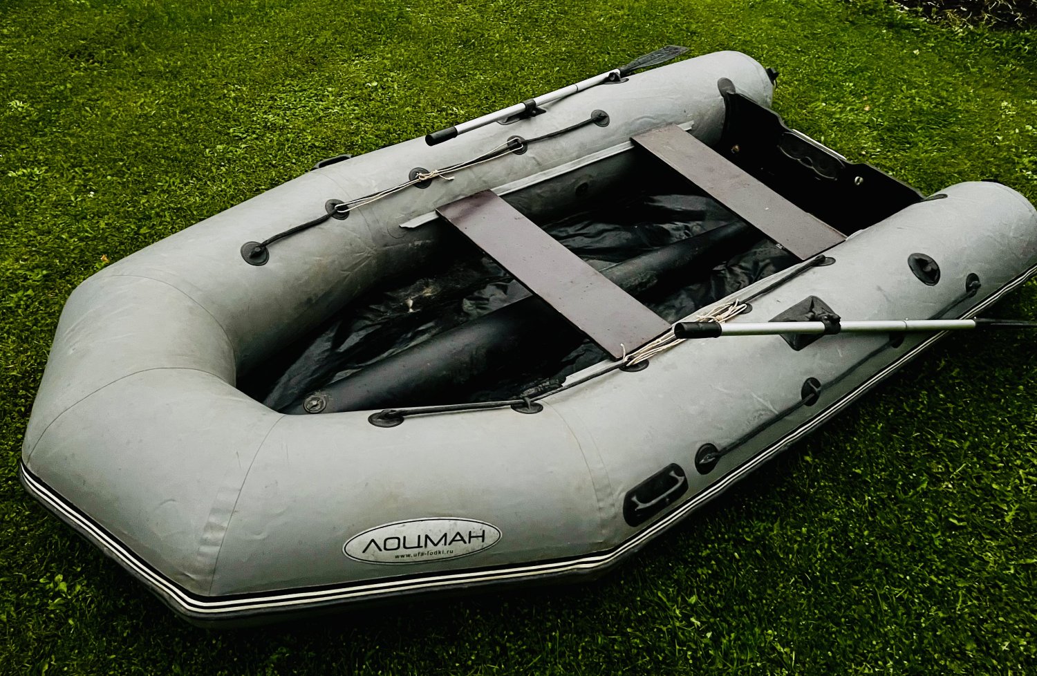 Пайольная. На шильдике год изготовления стерся, но, примерно 17г.в. Лодка хорошая, для двоих. Есть две латки: одна на киле, вторая на днище. Обе заклеены. Баллоны не травит, на баллонах латок нет. Так же заменен транец. Пайолы собирать для фото не стал, чтобы показать латки сразу при осмотре. Если нужно будет, при осмотре собререм. Цену вижу 25 т.р. отдам бонусом электронасос-улитку. Лягушку, естественно отдам тоже. Баллоны большие, намного комфортнее чем 3,2 и 3,3. Рыбацкая аура так же прилагается ?