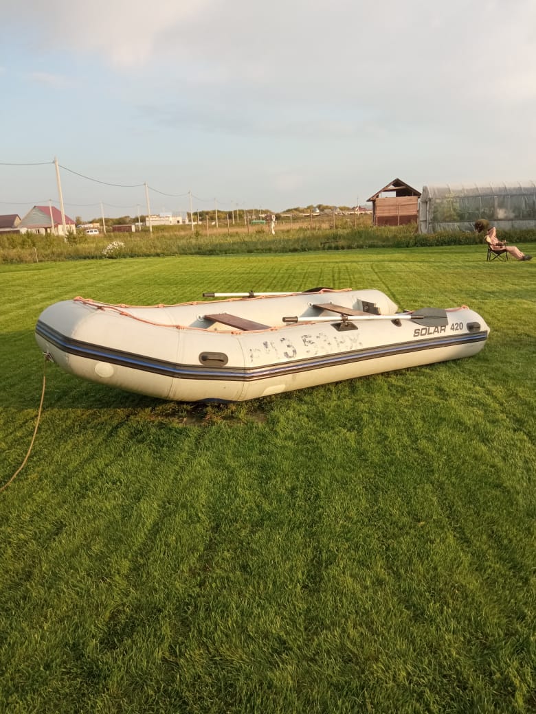 Комплекту 10 лет имеется 3 латки не травит мотор обслужен в этом году на воде не был , стоит на учёте в ГИМС