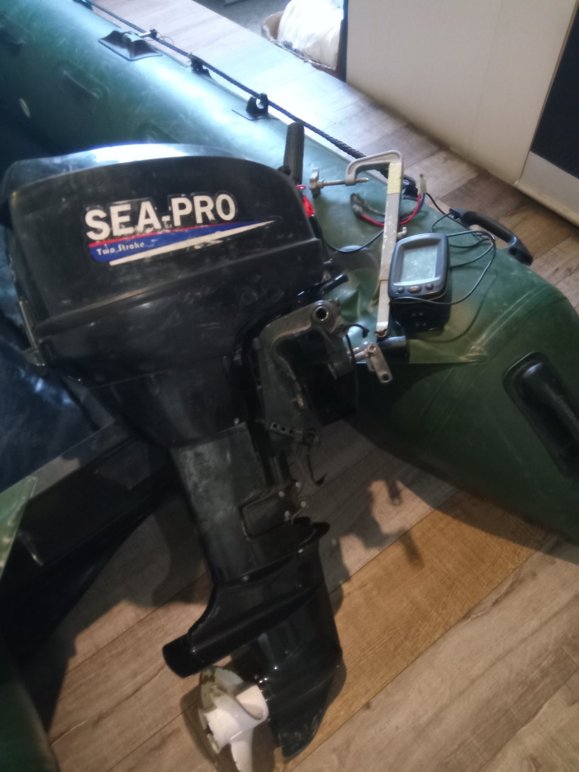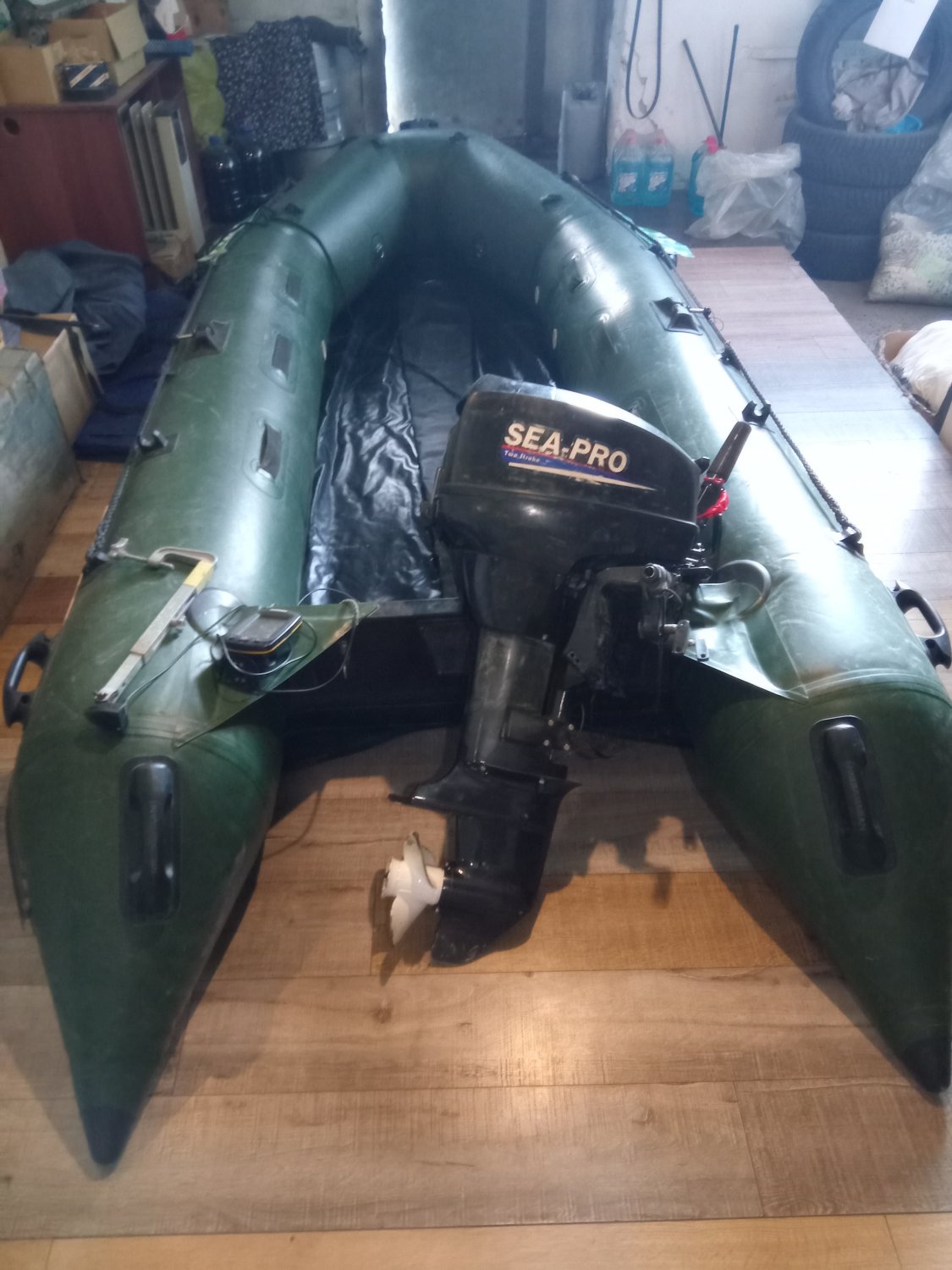 эхолот в комплекте(хоть и старенький ,но свалы и глубины показывает)
