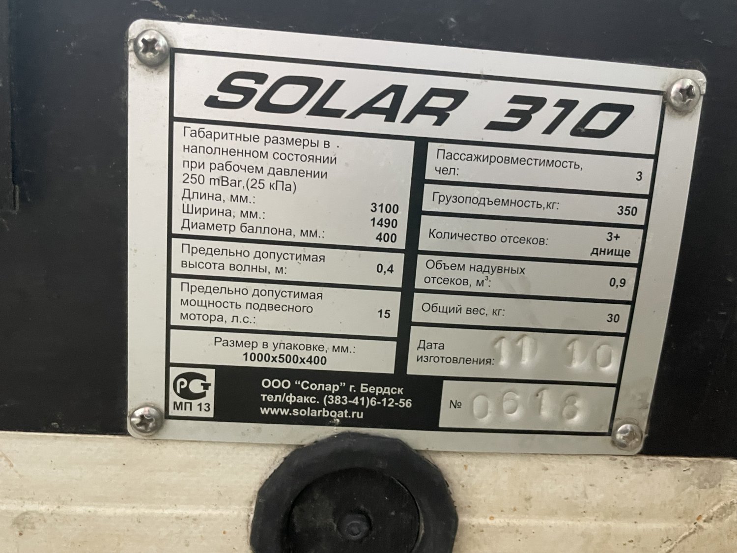 Продам лодку Solar 310t