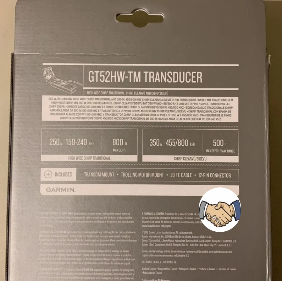 На устройствах Garmin Straiker Vivid - Отображается как GT52. Поддерживает все частоты 455 и 800гц. На устройствах Echomap Plus работает только на последней прошивке.