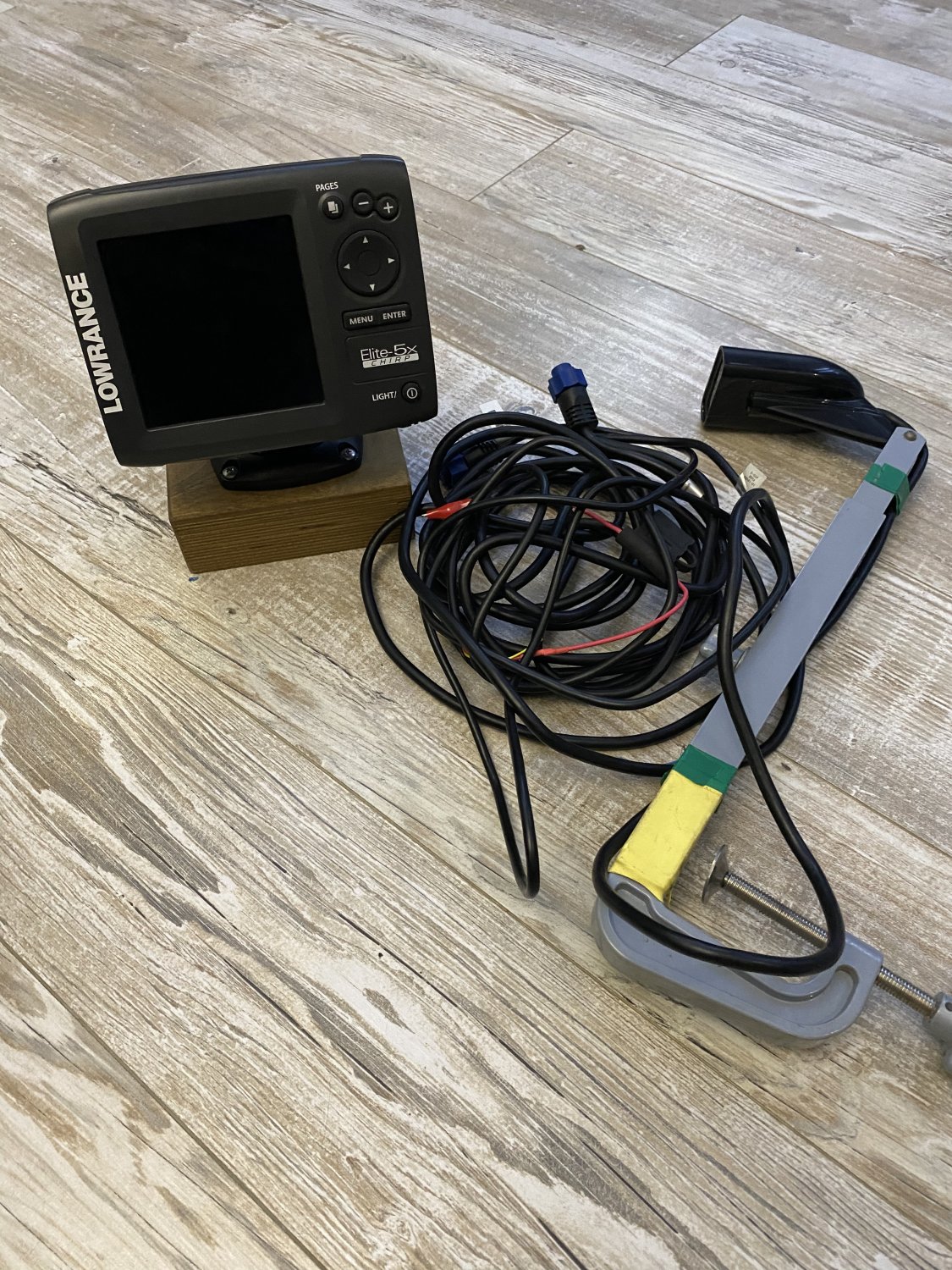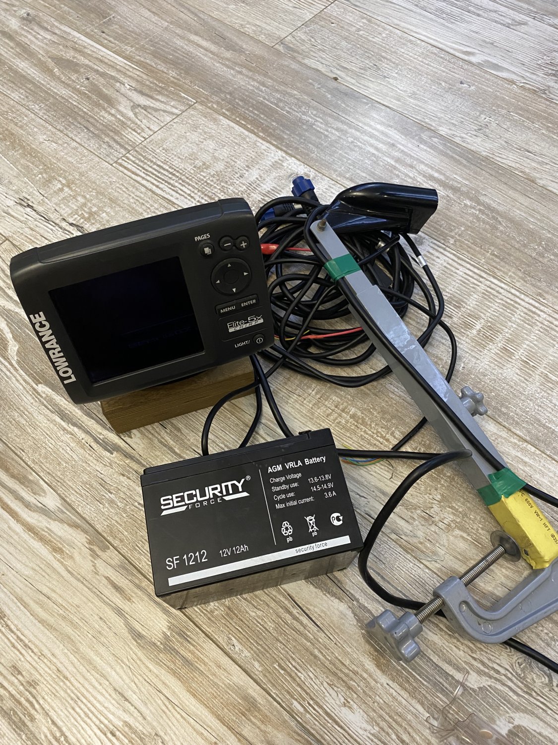 Эхолот, датчик, струбцина для датчика, подставка на ликтрос для головы эхолота
