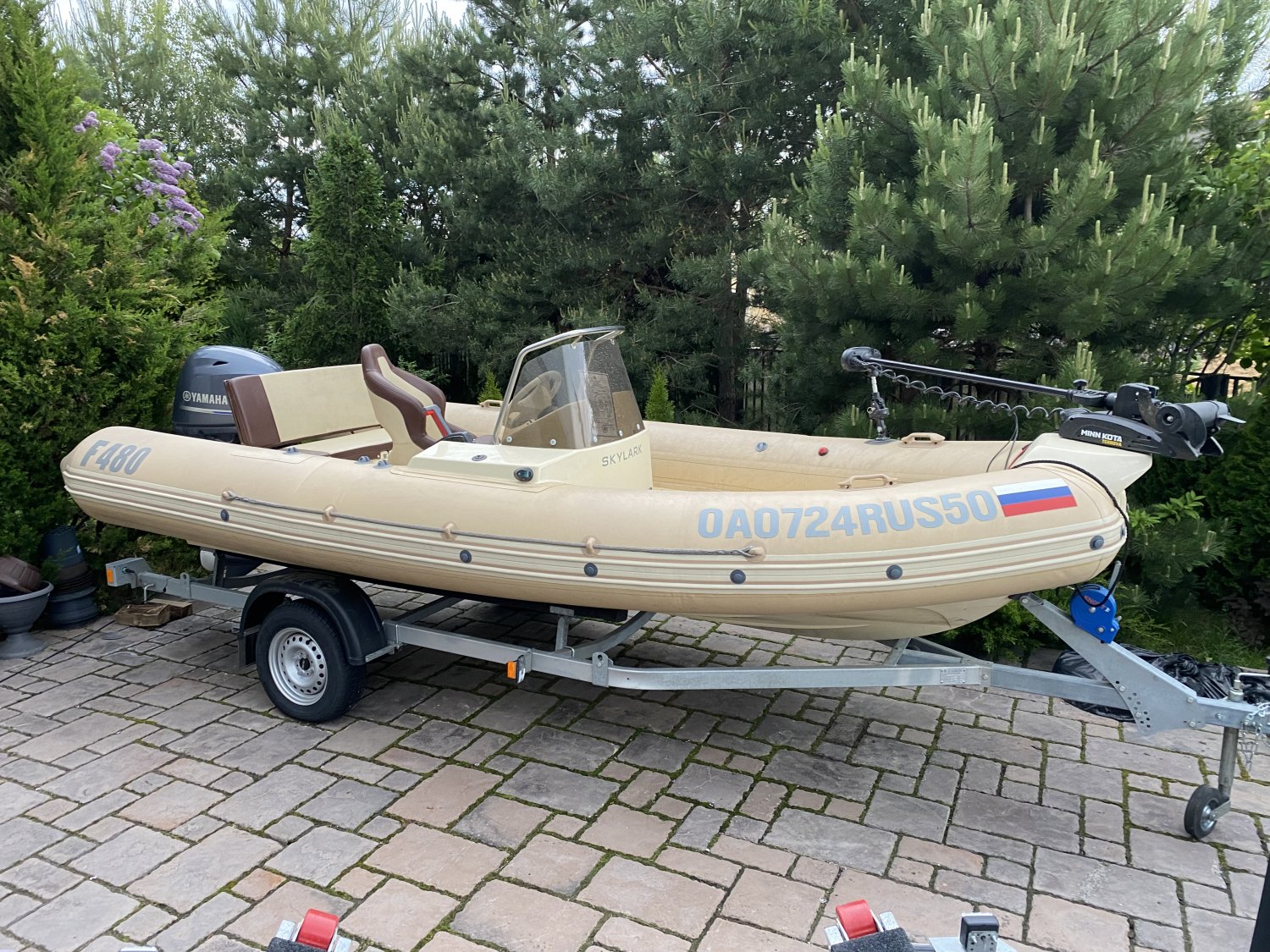 ПРОДАМ RIB Skaylark f480s с рулевой консолью, мотор Yamaha F50HETL, носовой Электромотор Minn Kota TERROVA 55 i-Pilot Link/BT/137см/12v с педалью и пультом, эхолот raymarine dragonfly 7 с датчиком, прицеп, ходовой чехол, стояночный чехол. В эксплуатации с июня 2021 года по сентябрь 2021 года на водохранилище.