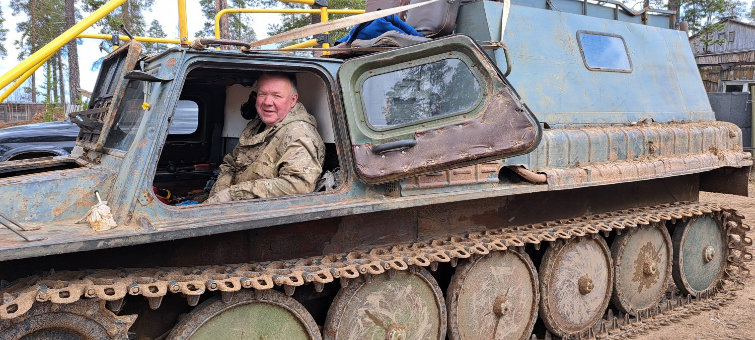 Движемся на вездеходе ГТС-гусеничный транспортёр-снегоболотоход.
