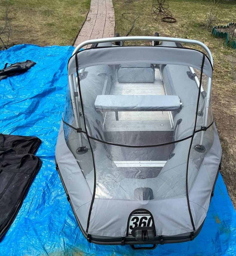 В комплекте: мягкие накладки на сиденья с сумкой, носовой тент с таргой, транцевые колеса. Модель 360 с пайольным дном из аллюминия.