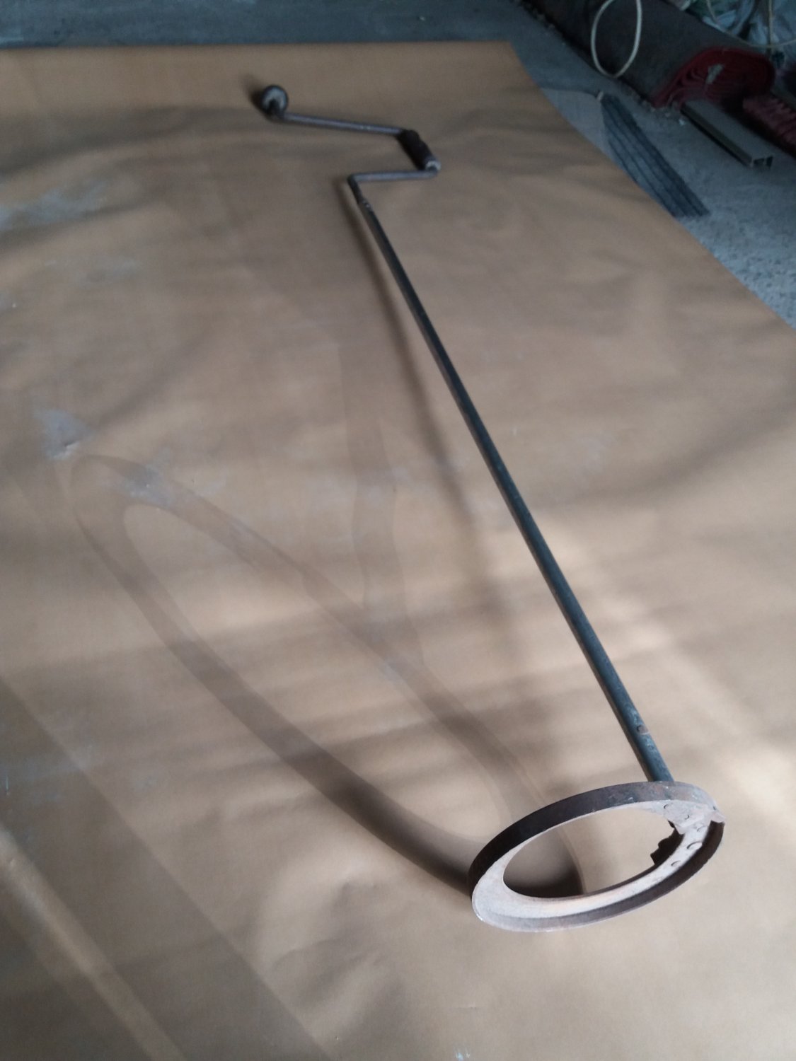 Продам бур кольцевой 180 мм. Очень древний, практически раритет (более 50 лет). Бегал с ним за лещом в 70-е годы, когда вся рыбацкая братия занималась этой рыбалкой. Не складывается. Бур вид.jpg