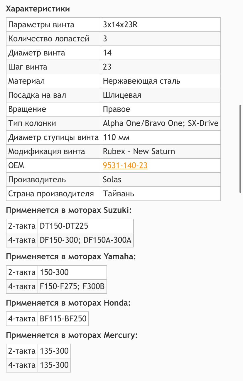 Новый винт Solas (9531-140-23). Нержавейка. Не использовался. Уточнения по телефону 89658287686