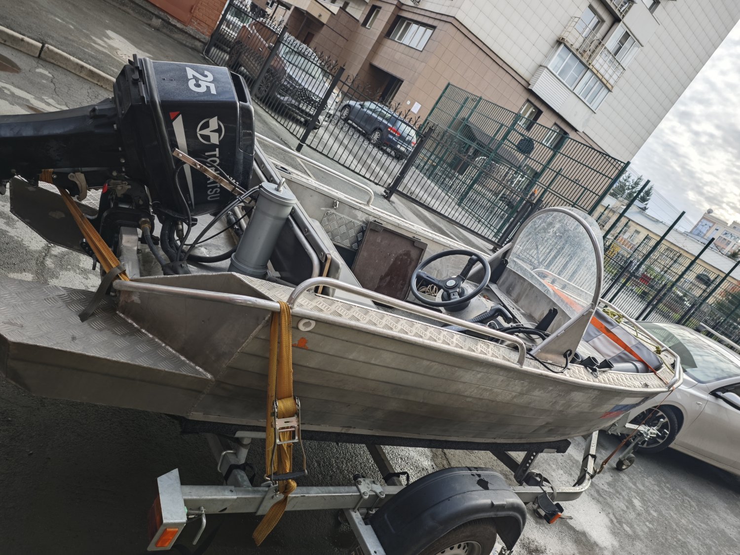 Касаемо мотора, мотор установлен абсолютно новый Tohatsu 25 2 такта в 2023 году с оригинальным дистанционным управлением, разрушен до 30 сил ( поменяна прокладка на впуске).