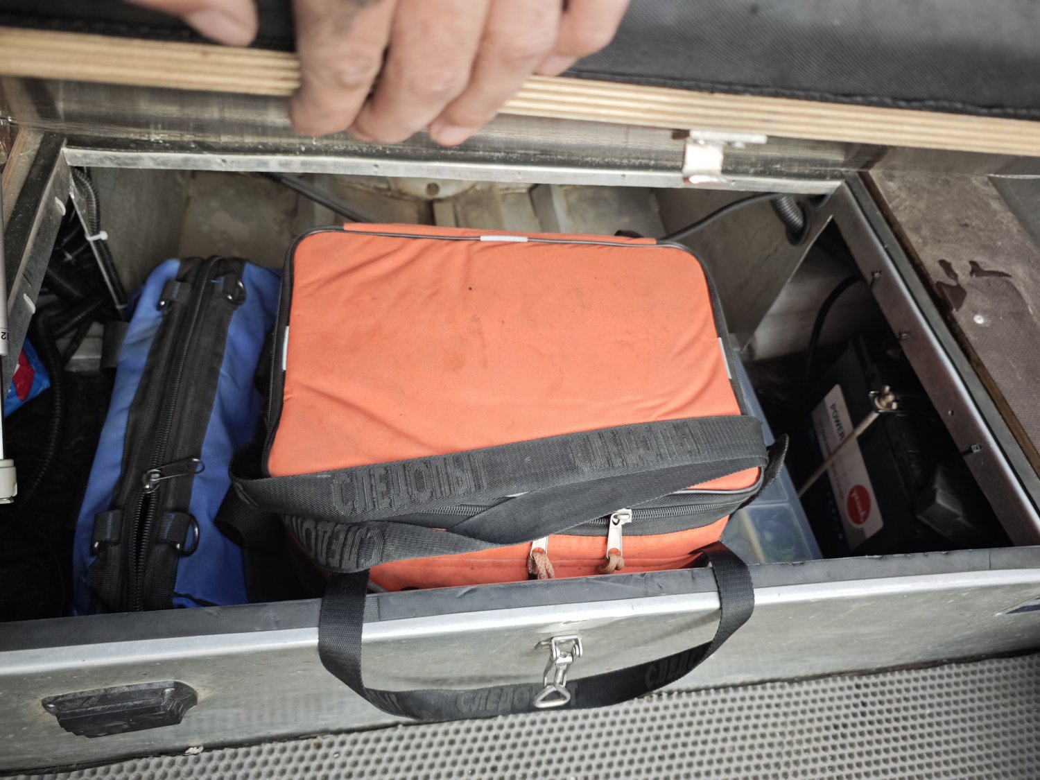 - с каждой стороны в доль всей лодке сделаны рундуки в том числе под аккумулятор для эхолота, в большом рундуке сделаны ограничители чтобы можно было сложить в него сумки или рыболовные ящики.