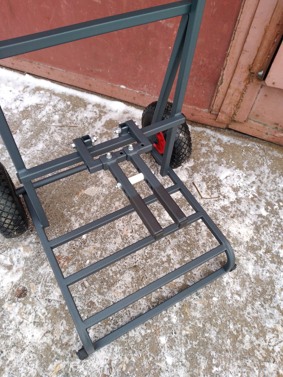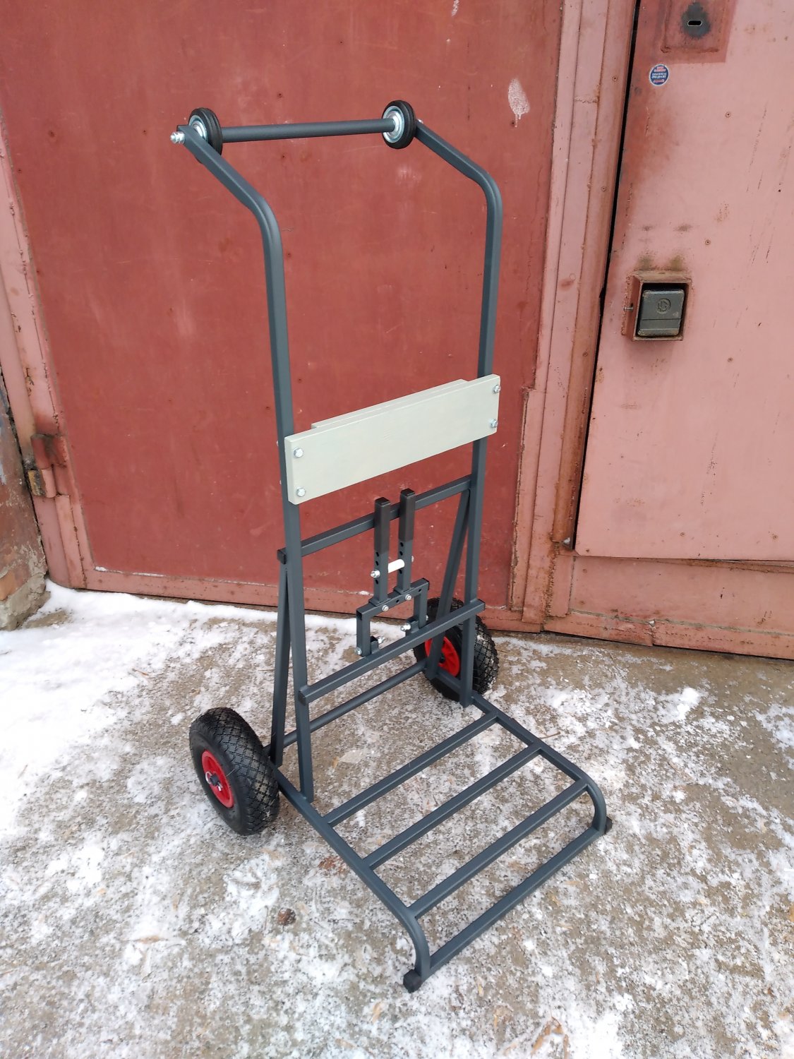 У многих лодки НДНД ,в сложенном состоянии это тяжелый большой тюк не удобный для переноски , для перевозки и погрузки в машину подойдет такая тележка. Возможно изготовление двух вариантов , колеса внутри рамы или снаружи ( более устойчивая ). Чтобы была возможность перевозить мотор можно поставить за доп . плату транцевую доску +200 р , для более надежной фиксации мотора откидной регулируемый упор дейвуда + 500р.