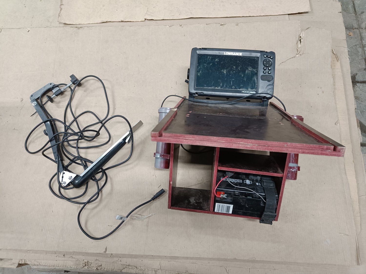 2. Столик для данного эхолота (3 отсека: аккумулятор, термос 1,2л, мелочевка; 2 держателя под спиннинги), крышка с усиленными кронштейнами выдерживает вес полного термоса)),