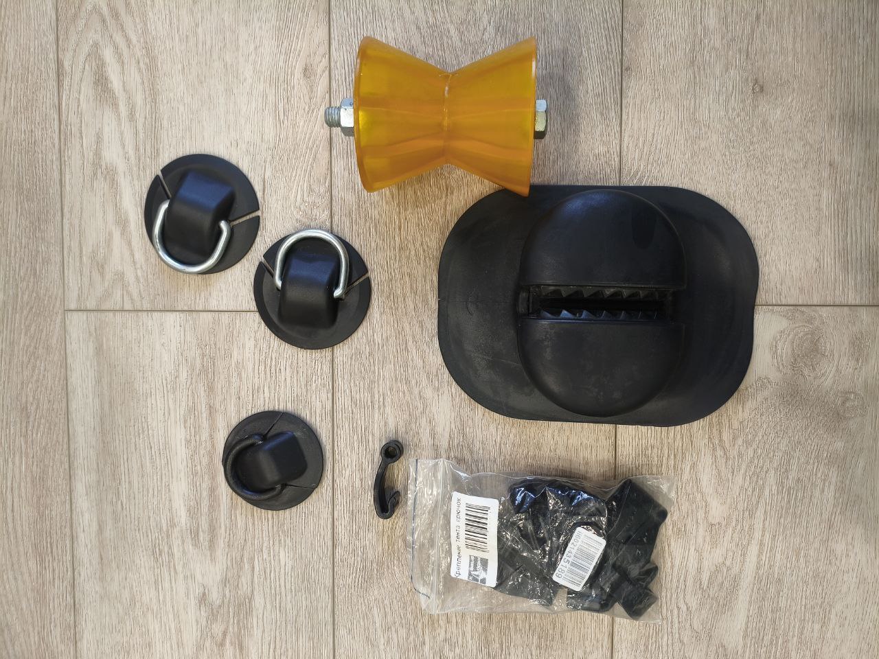 3. Фурнитура для лодки пвх (что-то новое, что-то бу), крючки для тента (новые), ролик носовой для прицепа (новый) - все вместе 400р