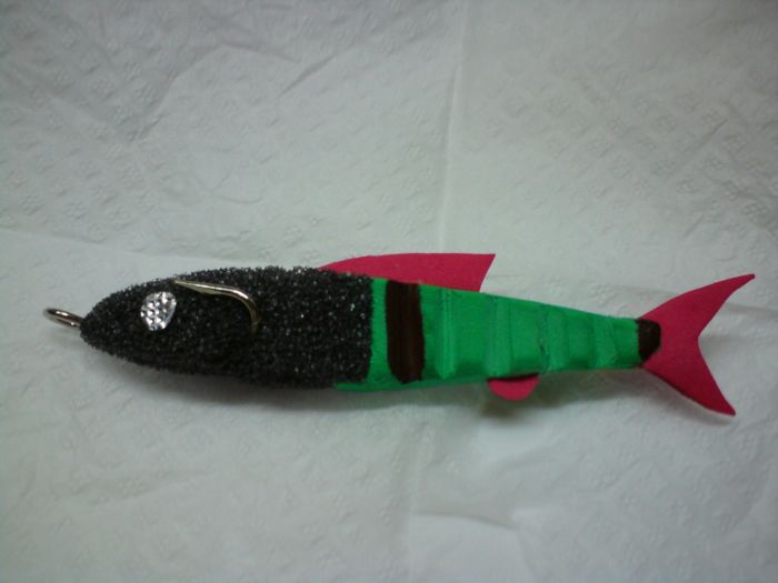 Вот реализовал комби приманку "наоборот", благодаря идеи Володи (prank), с прижатыми крючками. Низ - поролон, верх - пенополиуритан.