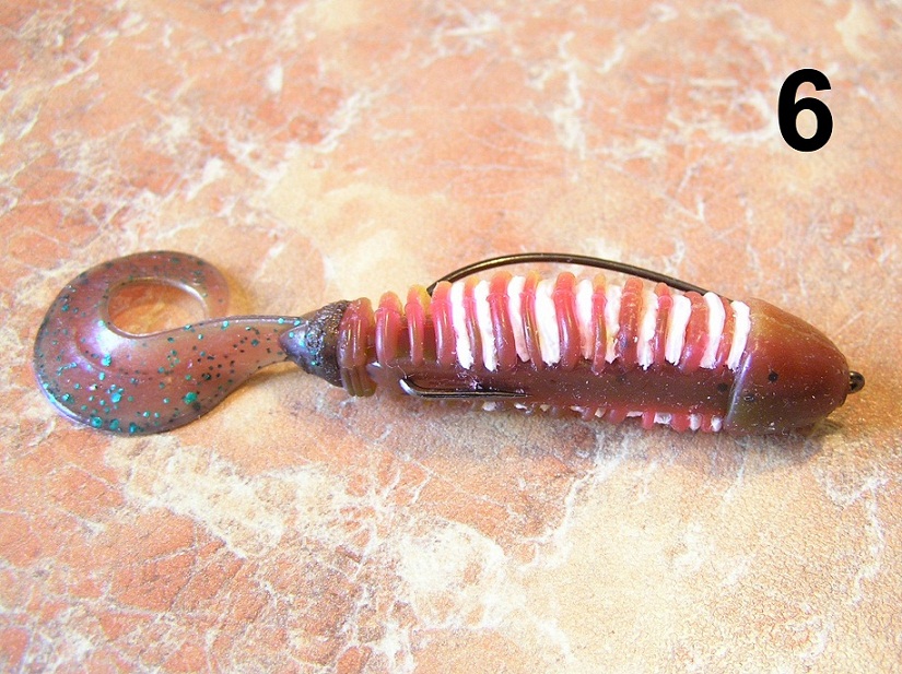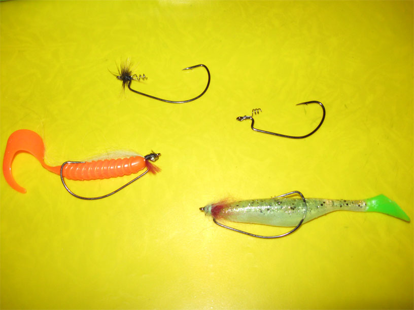 В последнее время использую монтаж силиконовых приманок на офсетный крючок с помощью пружинки.