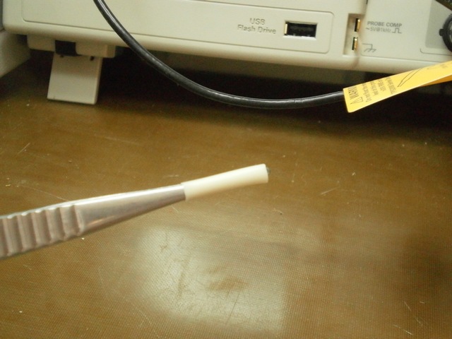 1. Берем в ящике кембрик подходящего диаметра, что-бы ухо двойника проходило внутрь с легким натягом