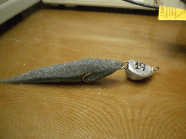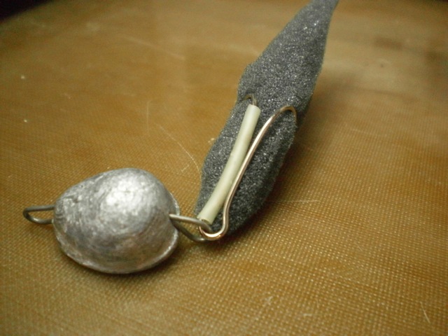 1. прожечь отверстие в поролонке и вклеить кембрик (для смены приманки с сохранением крючка);