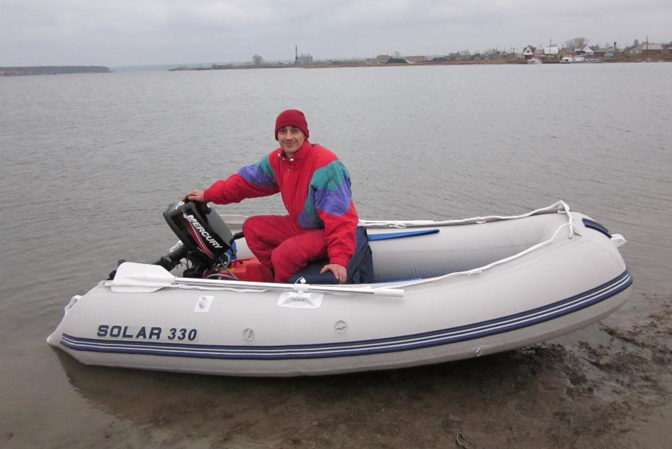Ну все! Ура! Приобрел Солар 330. В выходные не сдержался и не смотря на ветер и холод обкатали немножко Соларчик с женой! Итог такой: когда один в лодке - на глисс выходит за 4-5 сек., скорость очень хорошая ; когда 2 человека - на глисс не выходит, но идет быстро. Т.е. все ок! Все как планировал. Фото прилагаю! Спасибо тем, кто помог определиться с выбором. Будем ждать весны!!!