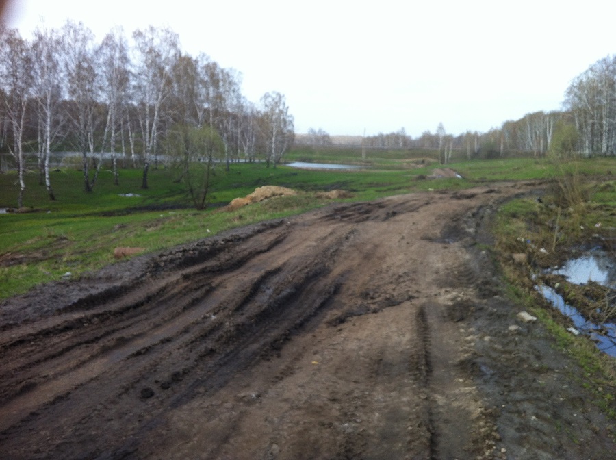 В тех немногих местах, где я ехал по дороге, я периодически защитой шаркал. Я же говорю, там кто-то на тяжелом транспорте прошел и продавил такую калею на некоторых участках, что если в нее влезть, просто повиснешь на дне. Поэтому я и пытался по бровке пройти, но из-за дождя сполз вниз :)