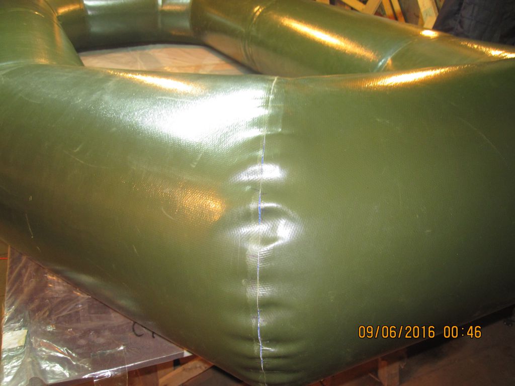 На днях обратился к нам заказчик с предложение сделать на его лодке киль. Первоначально лодка была не килевая,т.е. никакого провиса пола не было. Мои обращения к нему с предложением установить вдоль баллонов кили курсовой устойчивости не увенчались успехом. Ему хотелось киль вдоль всей лодки. Не хотелось резать пол. Решили сделать ему киль на днище. Вот как на фото. Киль накачивается через отверстие в полу (как обычно). Хотелось бы узнать, может был у кого подобный опыт.