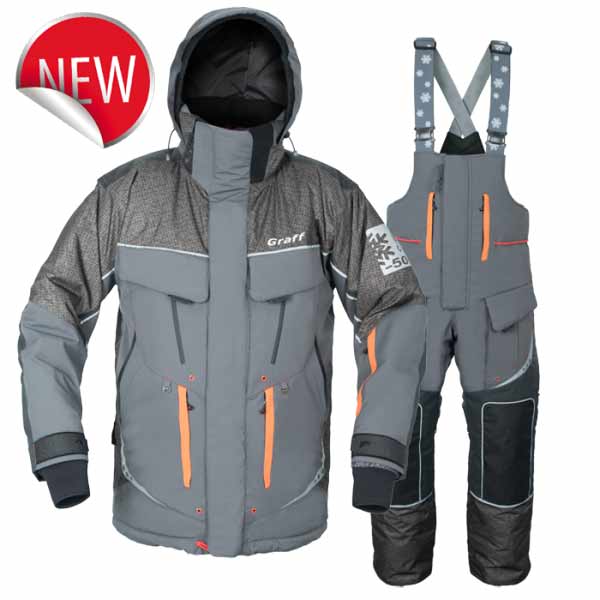 Флагманская модель зимней коллекции Graff 2017-2018. Является продолжением легендарной серии костюмов до -50 градусов. Костюм предназначен для использования в экстремальных погодных условиях (дождь, снег, ветер, сильный мороз, метель и т.д.) . Обладает повышенными свойствами водонепроницаемости и паропроницаемости 8000 mm H2O/8000 g/m2/24 h. Защиту от влаги и грязи обеспечивает специальное покрытие DRY CARE.