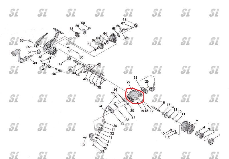Народ, всем привет. У меня такой вопрос, купил намедни катушку Rioby Fokamo 1000. И буквально после трех рыбалок появился какой-то дикий люфт детали № 27 на вложенной схеме. Не знаю как она правильно называется, ротор наверное. И ручка тоже люфтит, хотя с новья вроде не было такого. Сразу скажу рып на нее поймано не было ни одной, только несколько небольших палок. Хотя и их дуром не тянул. В общем, можно это самостоятельно поправить?