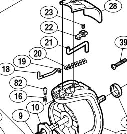 23, 19, 16, 82, из-за отсутствия деталек 16, 82 есть проблема фиксации дужки, сама открывается под нагрузкой. И в довесок накачал в катушку какого то непонятного масла, похоже на какую то силиконовую смазку. В общем задача починить проблемную часть и сделать катушке ТО.